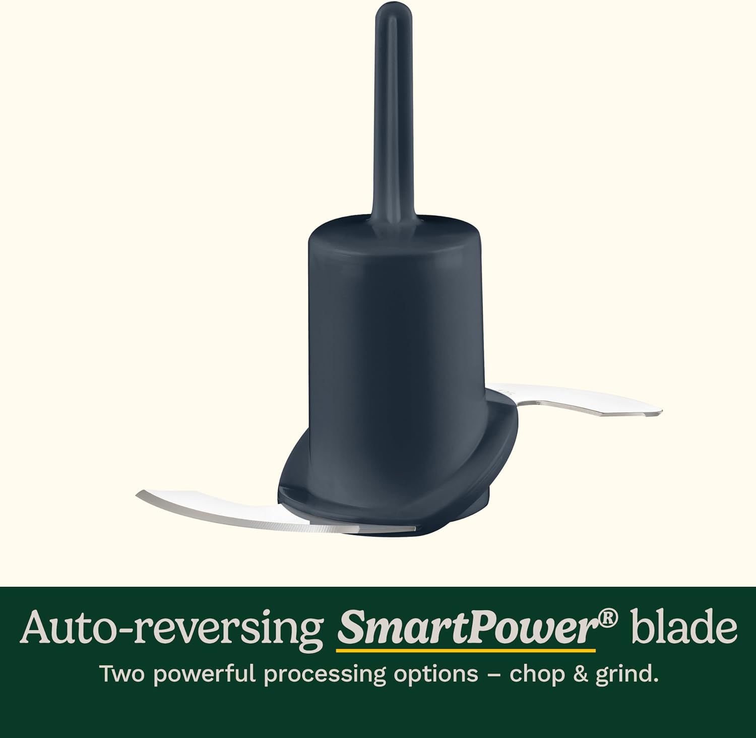 • CONVENIENT CONTROL: The 24-ounce food chopper with durable, lightweight plastic body features a push-button control panel and auto-reversing SmartPower blade for two powerful processing options—chop and grind (not recommended to grind beans as it chops)