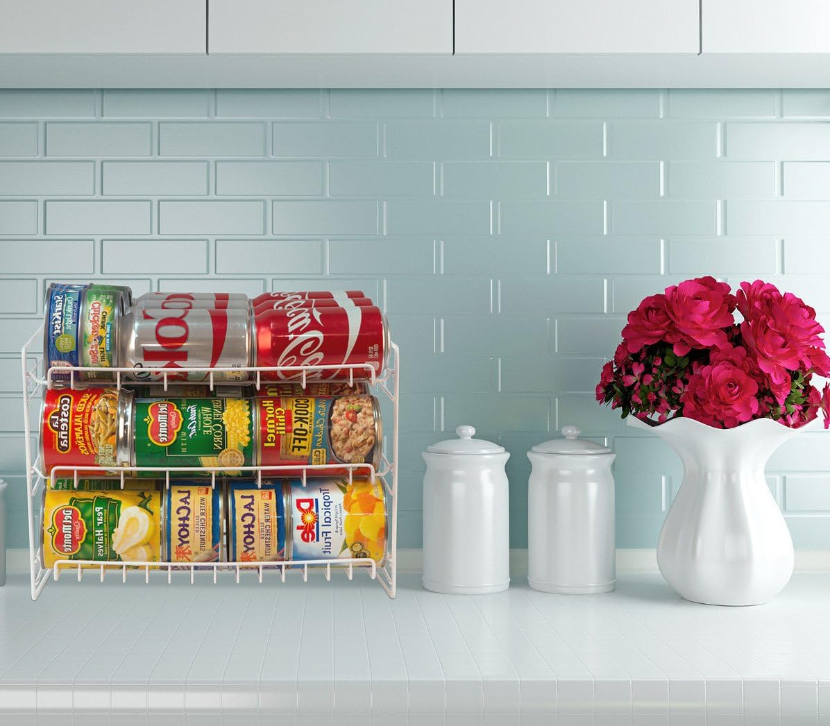- Angled gravity fed system brings cans forward for easy access. The Original Canrack fits in most kitchen cabinets and pantry shelves. No more stacking cans and shuffling them to find the right one. The steel wire construction is designed for years of use, and it's easy to clean. If you only order one, you will be back for more.
