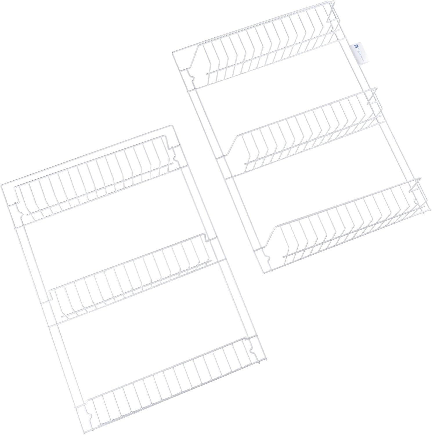 - 6-TIER ORGANIZER – This large door organizer has 6-tiers of 5-inch-deep wire baskets that keep items secure and visible. The over the door pantry organizer can hold cleaning supplies, pet treats, spices, boxed food, can goods, and more..PRODUCT DETAILS – Materials: Powder-Coated Steel. Dimensions: (L) 19” x (W) 5” x (H) 56-64”. Includes Door Organizer in 2 Pieces and 2 Door Hooks.Assembly required: Minor assembly is required. Assembly time: 5 Minutes. Can be mounted to a wall or hung over the inside of just about any door