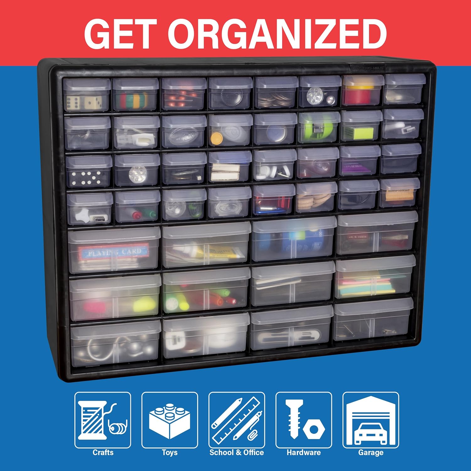 - GARAGE ORGANIZATION: The small parts organizer is great for garages and workshops for both homeowners and businesses; The plastic storage drawers can be used as tool box, screw organizer or for battery storage; Keep nails and other small parts accessible