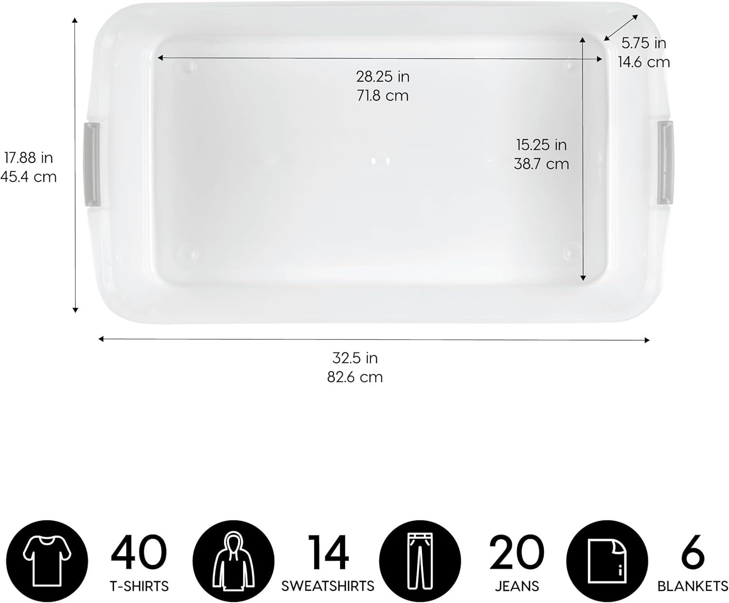 - EVERYDAY ORGANIZATION: IRIS USA 50 Qt. containers are perfect for organizing all of your items that need to be stored away while keeping dirt and dust away from clothes shoes and bed linens. They're also great for storing seasonal or holiday items.
