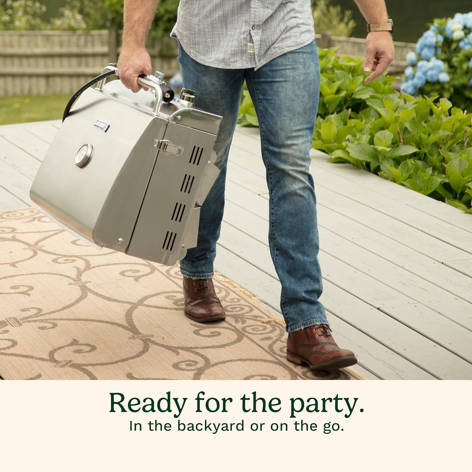 • STAINLESS STEEL GRATES: Experience the performance of a full-sized BBQ grill in a compact form. The stainless grates deliver even heat distribution, making it the perfect camping grill for large cuts of meat or delicate foods
