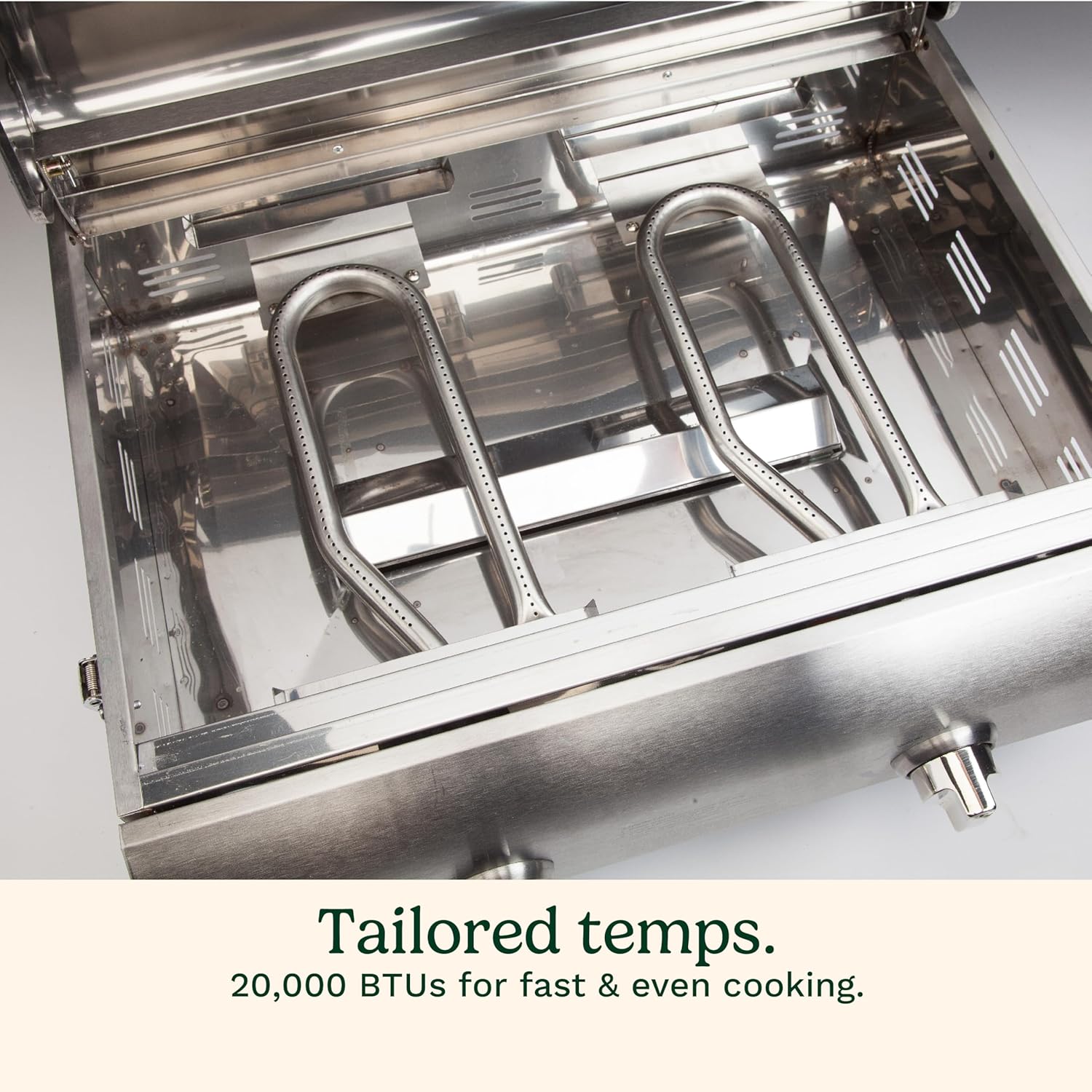 Cuisinart Chef's Style Tabletop Portable Propane Gas Grill, 20,000 BTU Stainless Steel 2-Burner Outdoor BBQ Grill for Camping, Tailgates, BBQ, Hassle-Free Setup