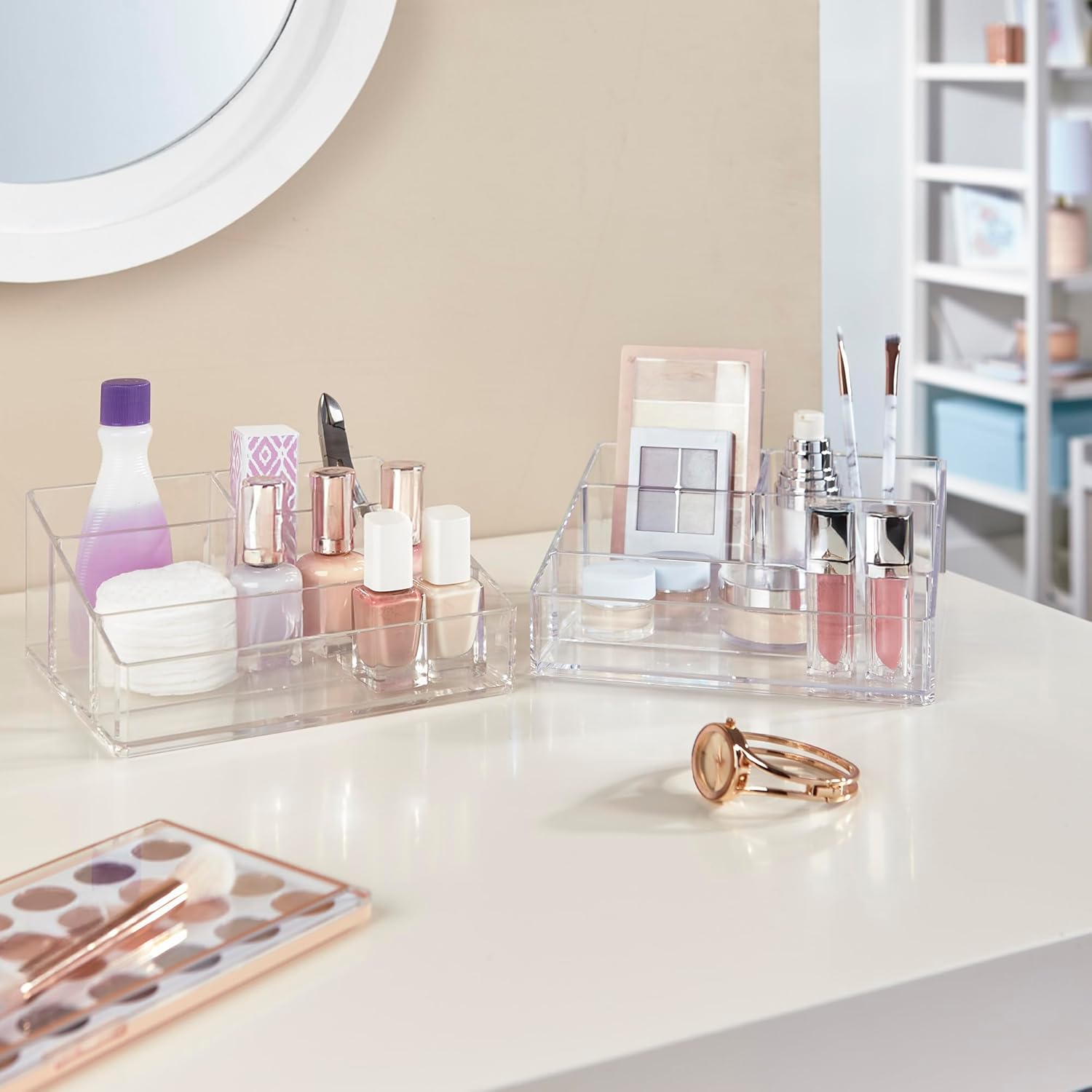 - Keep makeup and accessories neat and organized for easy access, allowing for more efficient use of time while getting ready. Save space with compartments that keep items upright, visible, and in their proper place.