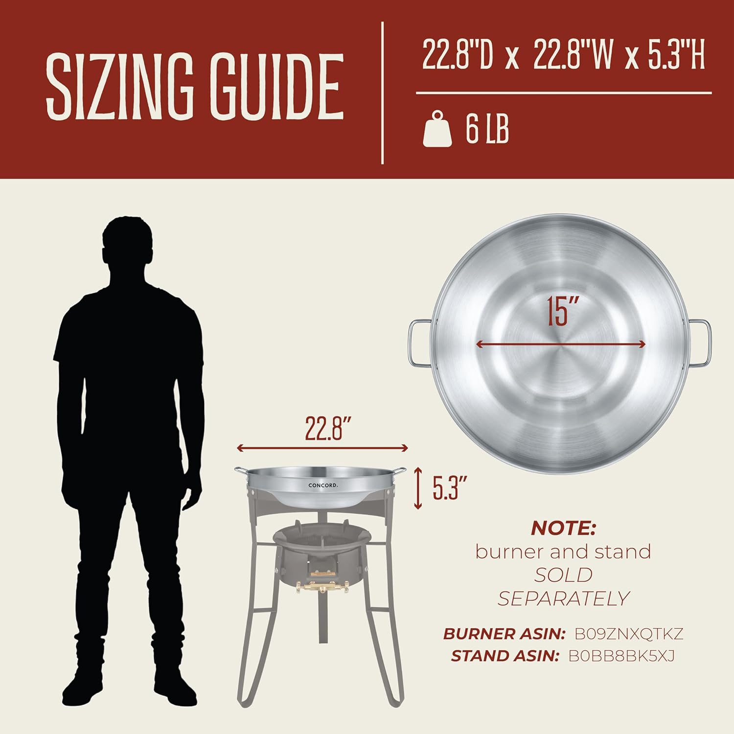 Concord Stainless Steel Comal Frying Bowl Cookware (22"), silver (S4008 S4812 S5612)