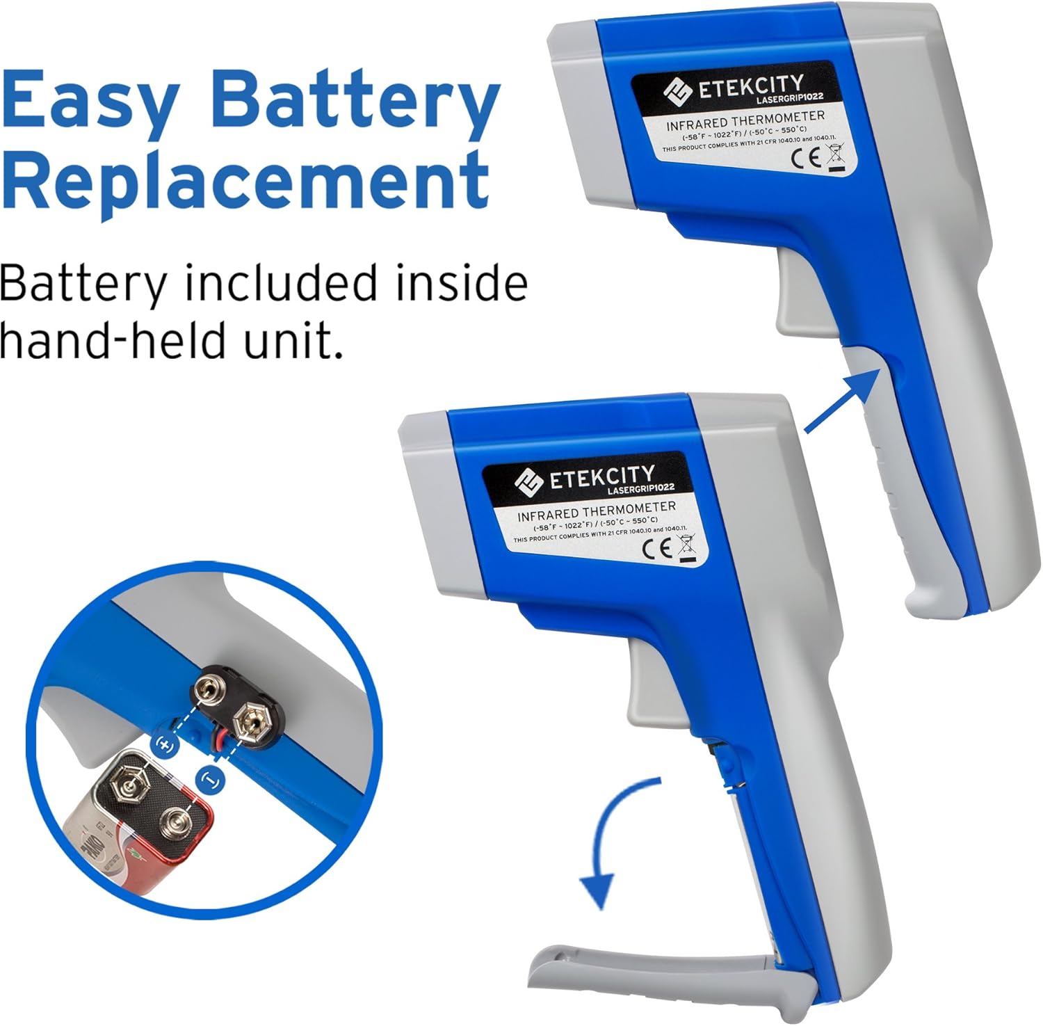 Etekcity Digital Thermometers Non-contact-58°F ~1022°F (-50°C ~ 550°C) ith Adjustable Emissivity & Max Measure for Meat Refrigerator Pool Oven, Blue