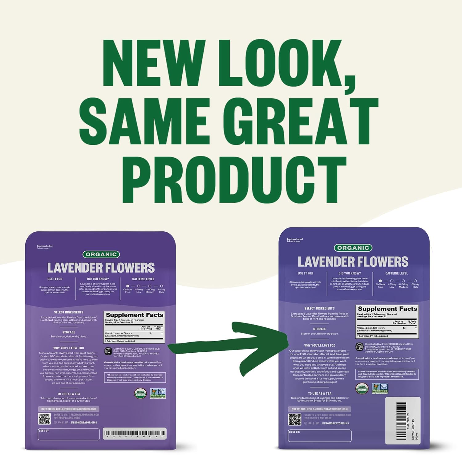 FGO Organic Dried Lavender Flowers, Extra Grade Dried Buds, Imported From France for Culinary or Sachet Bags, 4oz, Packaging May Vary (Pack of 1)