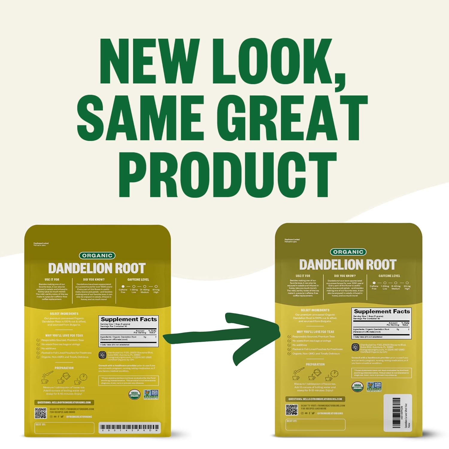 FGO Organic Dandelion Root Loose Tea, Cut and Sifted, Caffeine Free, 16oz Bulk Resealable Bag, Packaging May Vary (Pack of 1)