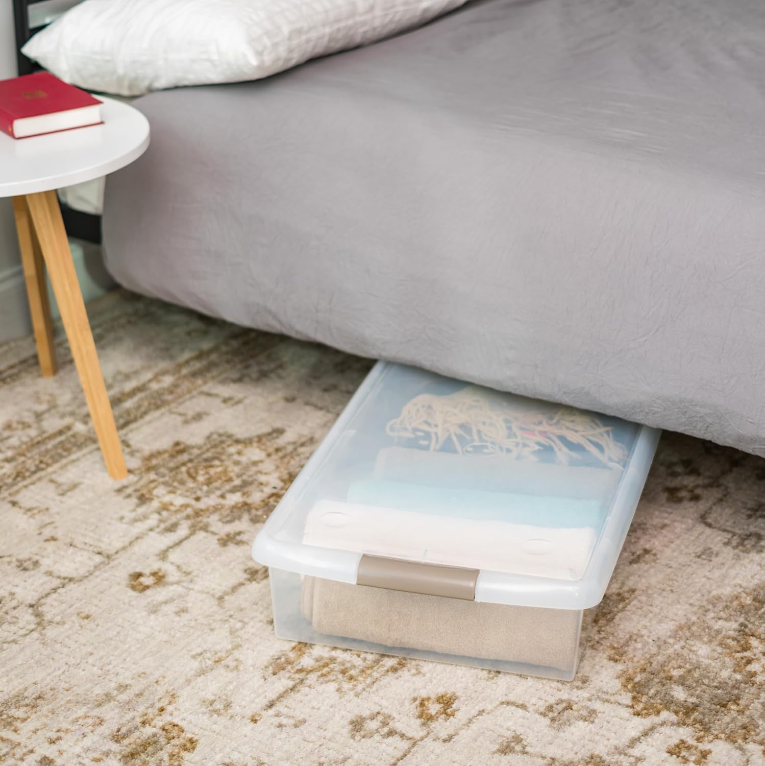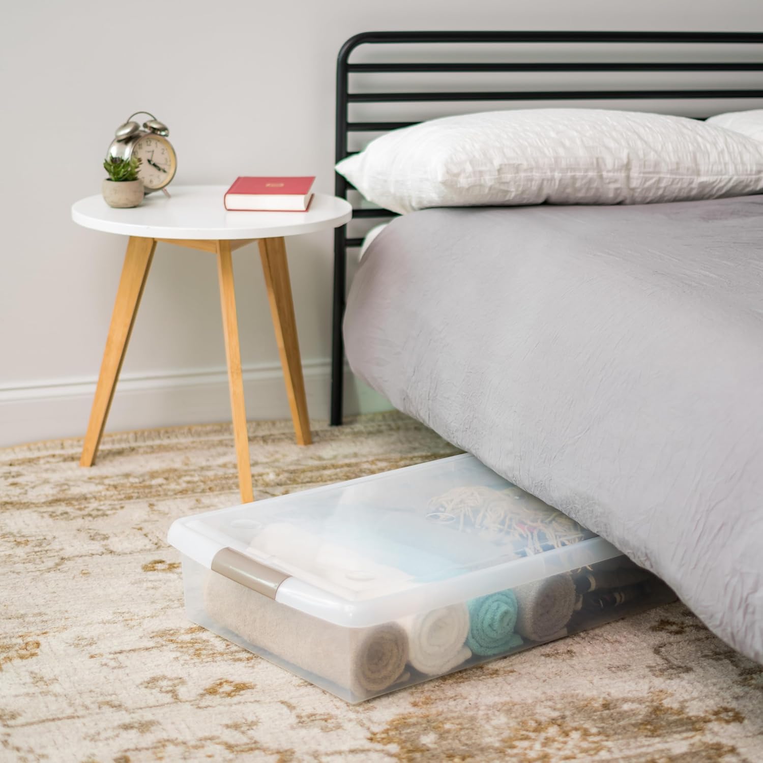 IRIS USA 40 Qt Plastic Under Bed Storage Nestable Organizer Bin Container with Secure Lids and Durable Buckles, 1-Pack, Under Bed Storage Containers for Clothes Shoes Bedding, Gray/Clear