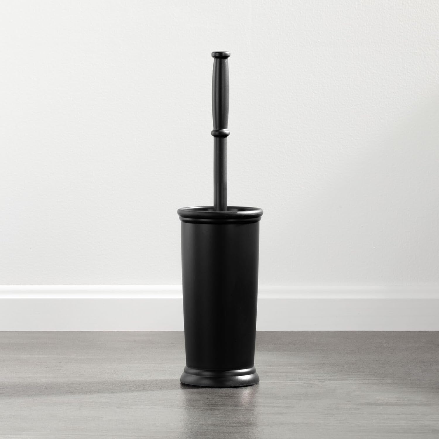 mDesign Toilet Bowl Brush and Holder - Covered Bathroom Toilet Brush - Standing Toilet Bowl Scrubber in Modern Holder - Compact, Space Saving, Deep Cleaning Brush for Toilet - Hyde Collection - Black