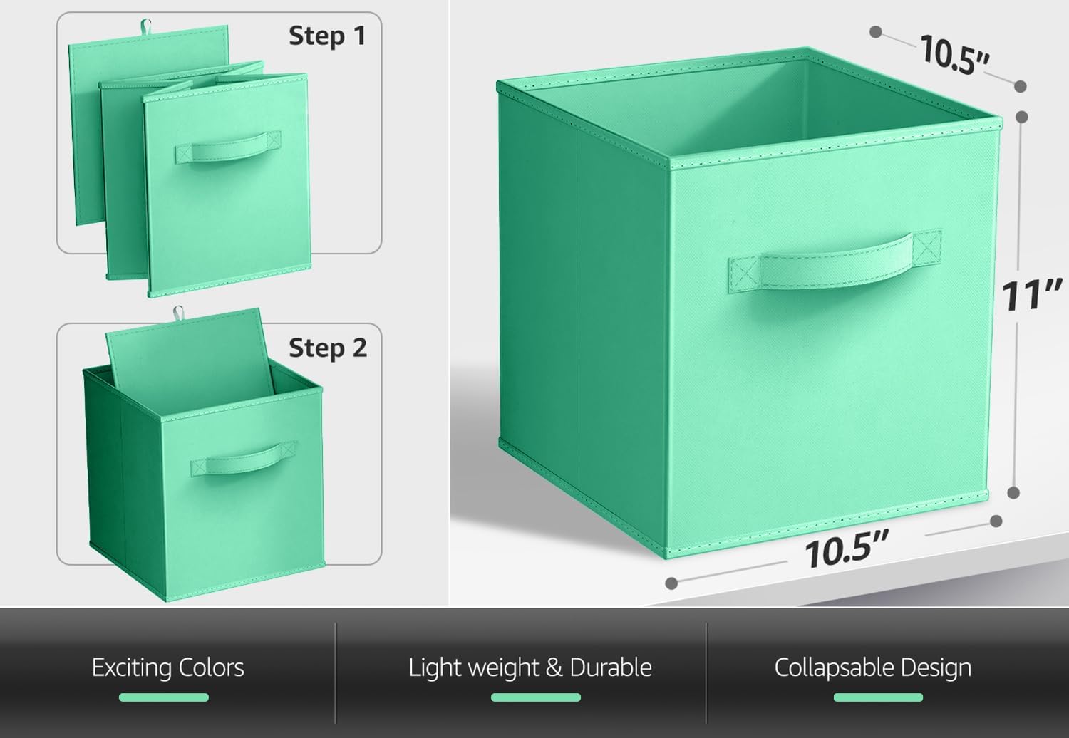 Sorbus Foldable Storage Cubes - 6 Fabric Baskets for Organizing Pantry, Closet, Shelf, Nursery, Playroom, Toy Box, Cubby - 11 Inch Dual Handle Collapsible Closet Organizers and Storage Bins (Teal)