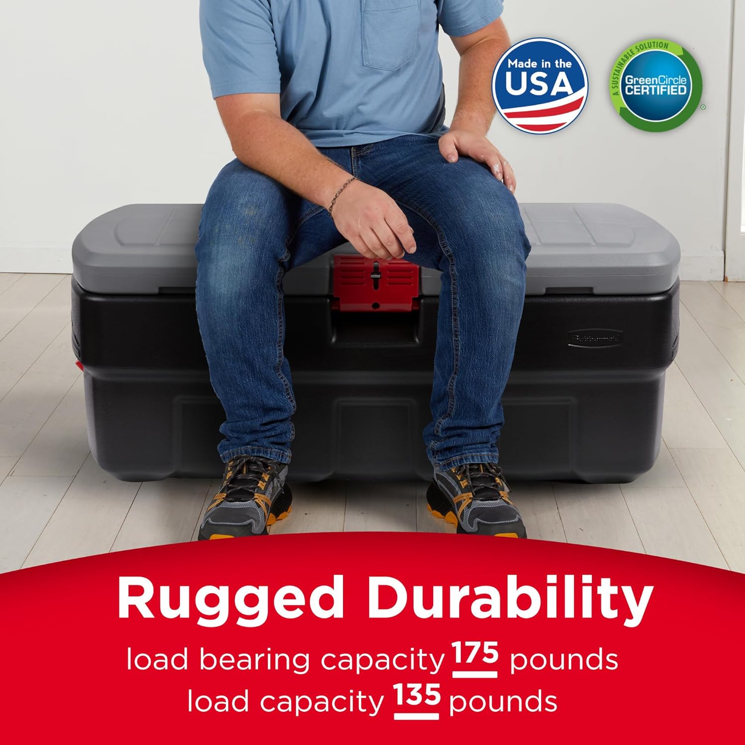 Rubbermaid 48 Gallon Black Action Packer Lockable Latch Indoor and Outdoor Storage Box Container for Home, Garage, Backyard, Single