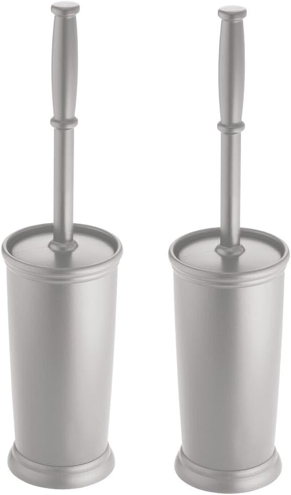 - STYLISH STORAGE: This modern bathroom toilet cleaner brush with a stylish individual holder provides simple, discreet storage for a bathroom must-have; Keeps floors clean and dry; The slim design of this toilet bowl scrubber and holder tucks neatly in the space beside the toilet; Perfect for small bathrooms as well as full, half-sized, and guest bathrooms; Non-skid, non-slip foam base keeps the toilet brush cleaner and holder securely in place; Look and performance hold up to daily use; Set of 2