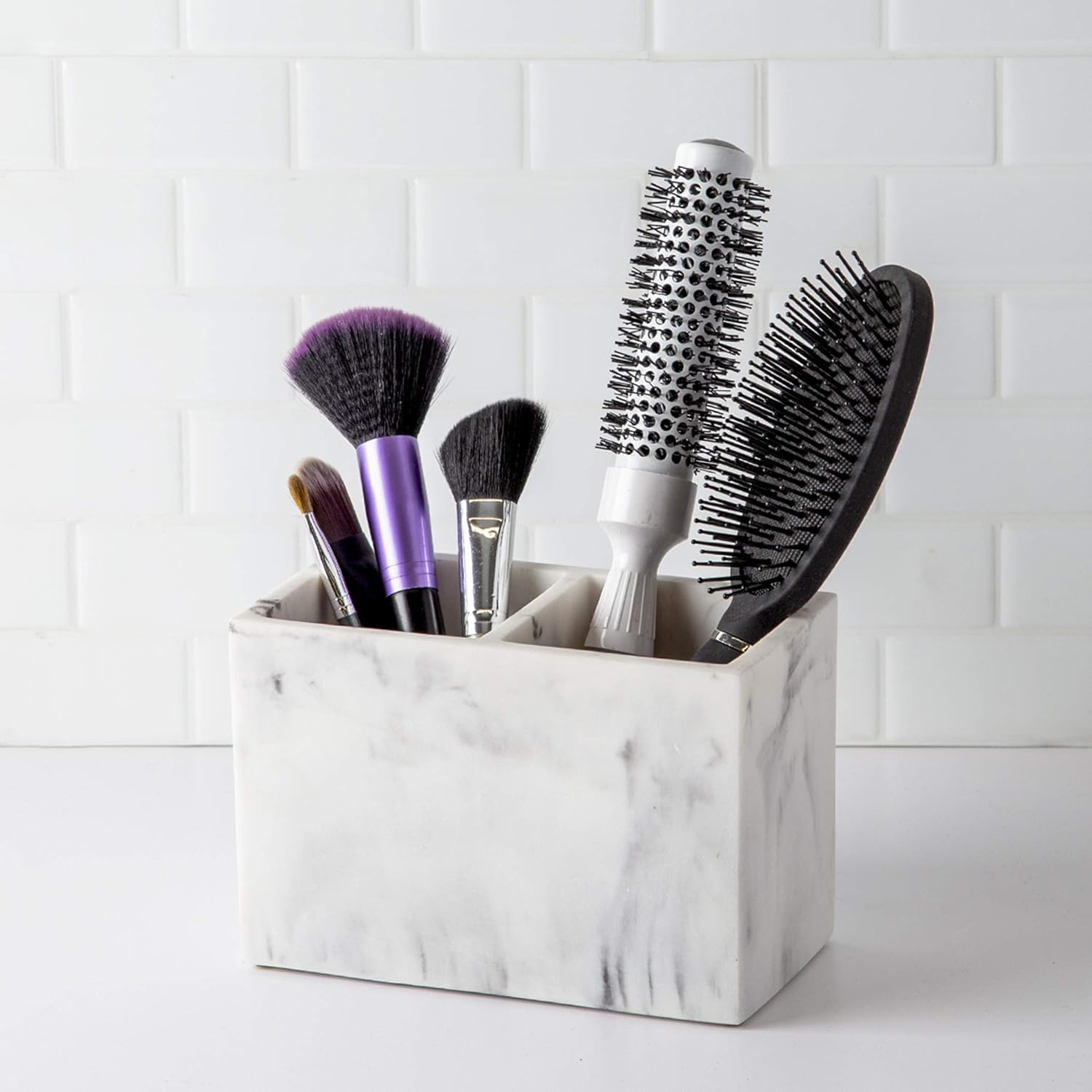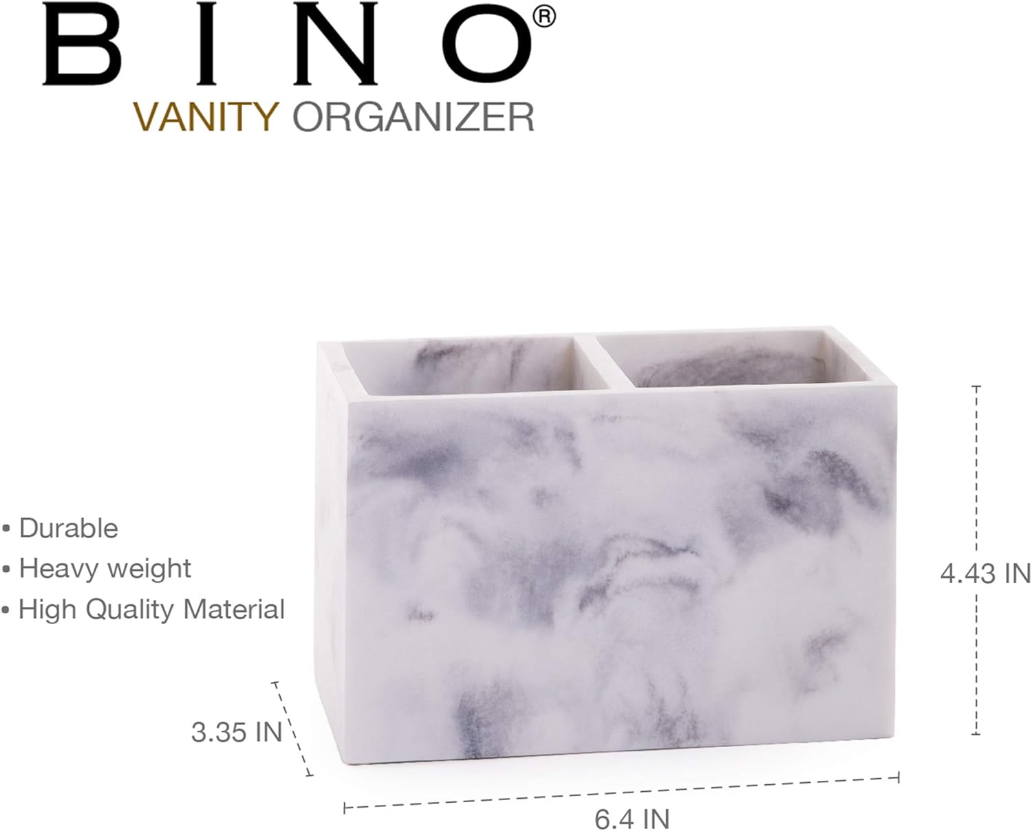 BINO | Multi-Purpose 2 Compartment Organizer - Elegant Makeup Brush & Toothbrush Holder for Bathroom and Vanity | Marble Stylish Accessories for Organization