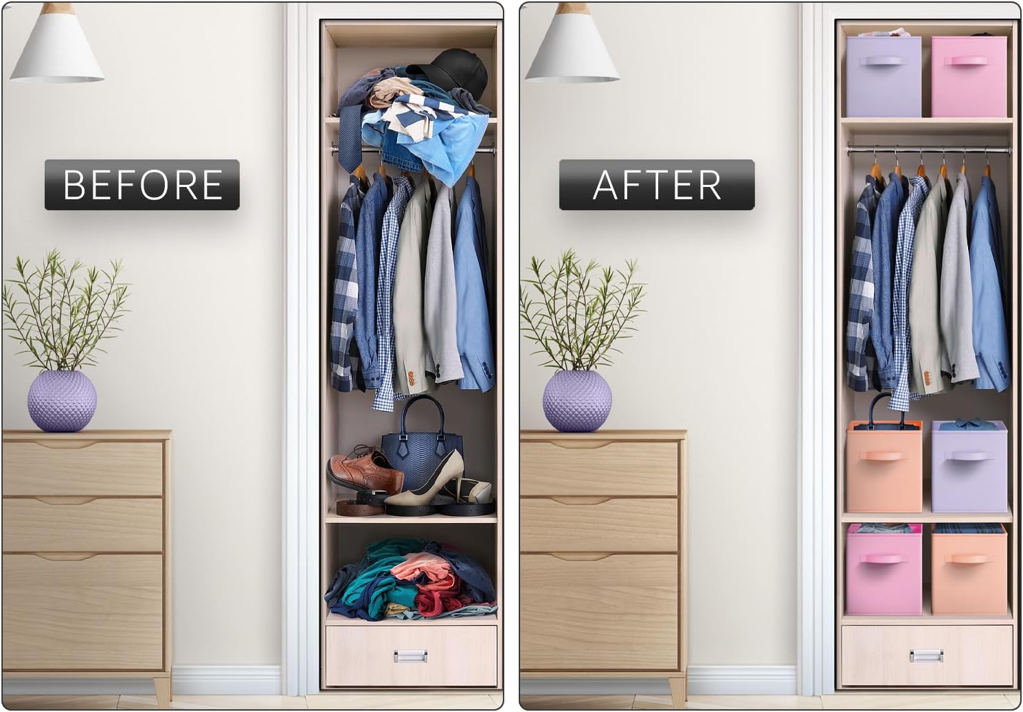 - Orange, Purple and Pink Storage Cubes: Sorbus Pastel Colorful Foldable storage basket set provides attractive, lightweight solutions to many organization and storage needs while keeping household items tidy and organized - Complete closet spaces, nurseries, and more. Sorbus Foldable Storage Cubes measure approximately 11" H 10.5 x 10.5 storage cubes