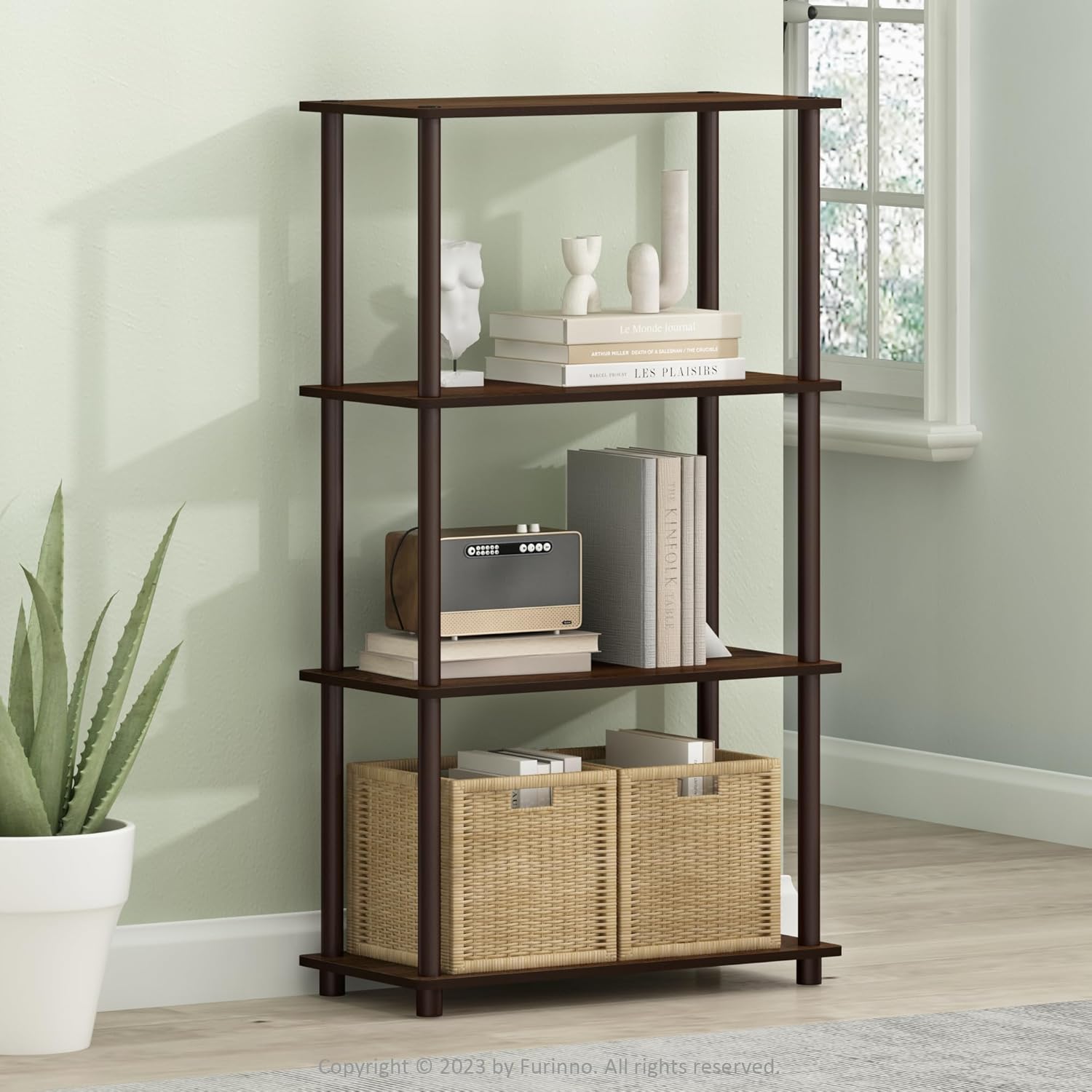 Furinno Turn-N-Tube 4-Tier Multipurpose Shelf Display Rack, Round Tubes, Walnut/Brown