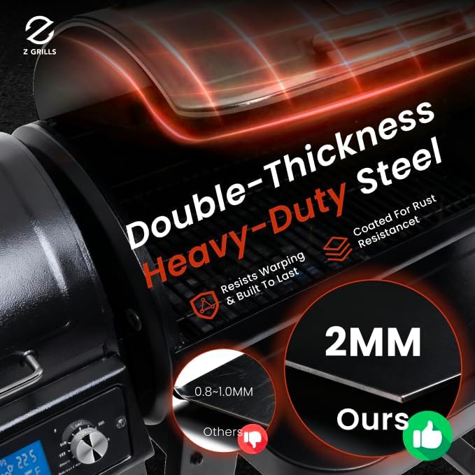 - Durable & Portable-- Sturdy steel construction with a high-temperature powder coating finish makes the pellet grill long-lasting. Lift the left side to roll smoothly on the right wheels, then lower the left legs to lock securely in place.