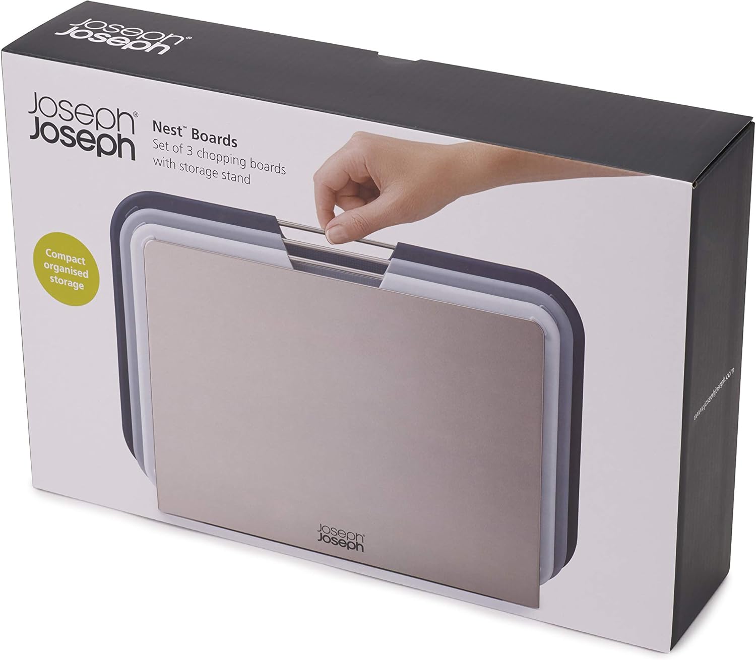 Joseph Joseph Nest 3 Piece Color Coded Cutting Board Set With Storage Stand, Regular - Grey/Blue