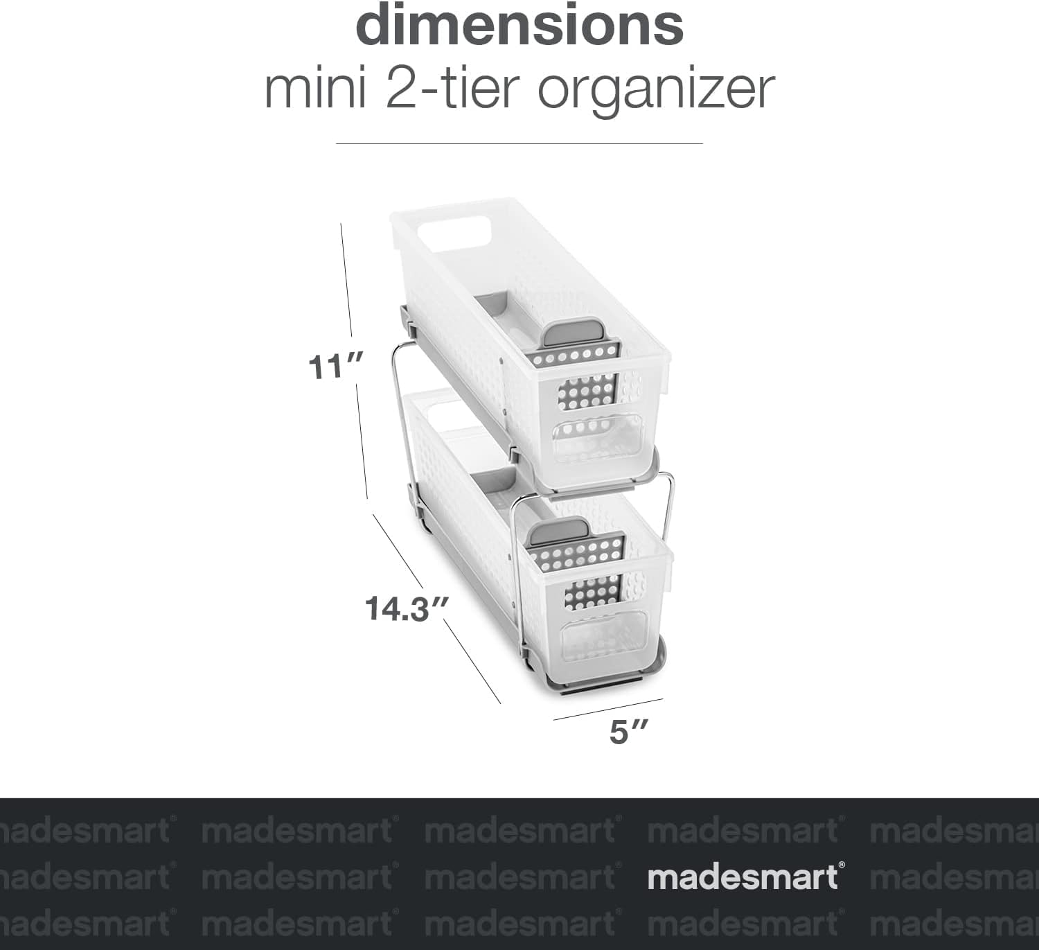 - SPACE-SAVING DESIGN: Features 2 removable baskets for easy access to your essentials, and both baskets have 2 adjustable dividers to help further separate your items for easy custom organization. Bins measure 14.3"x5"x11" when stacked.