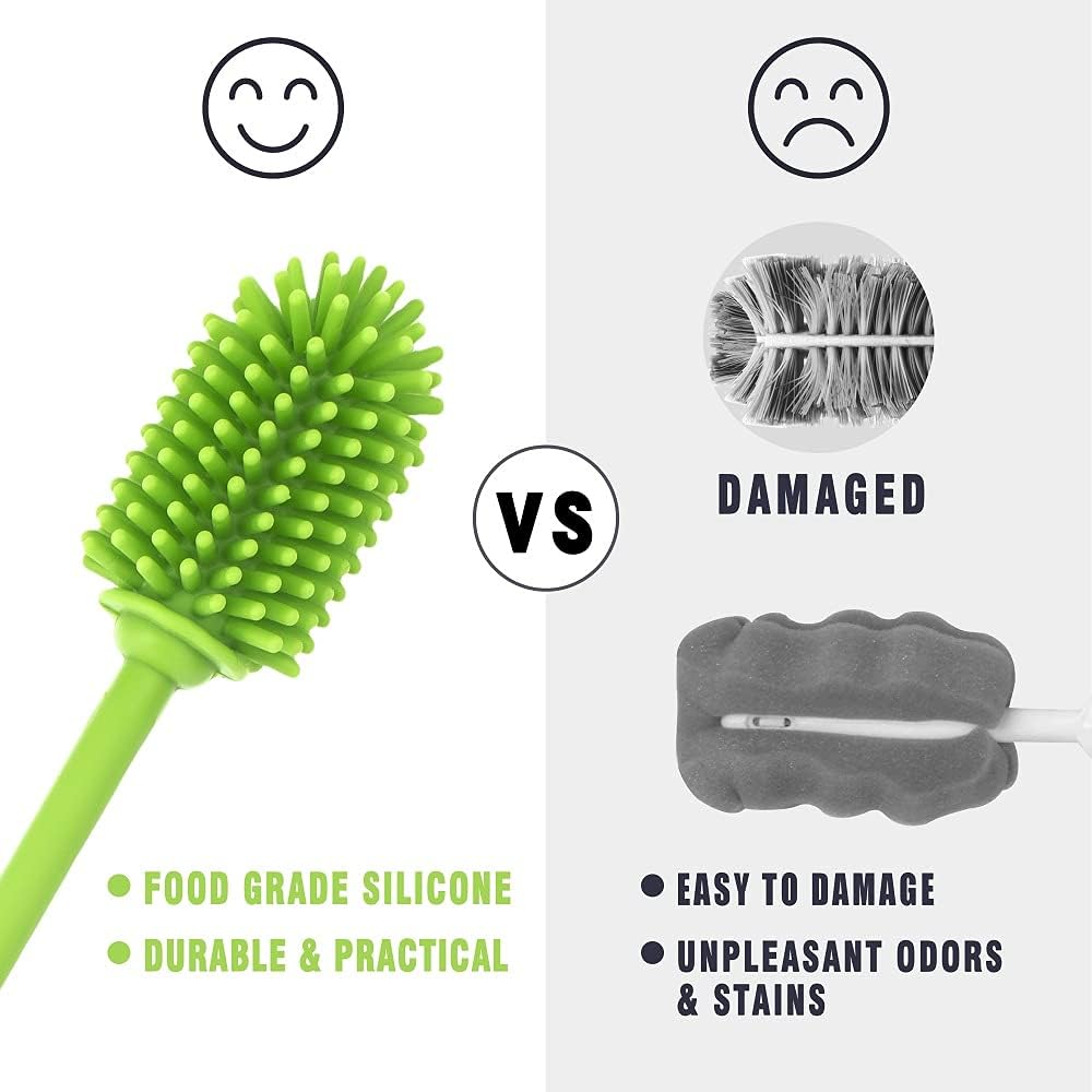 - 【Better Brush For You】Our silicone bottle brush cleaner brush repels unpleasant odors, stains, - unlike sponge and nylon brushes - preventing nasty stains build-up which is more healthier for your family. You will no longer worry about the smelly sponge bristles, it may replace all bottle brush in your home