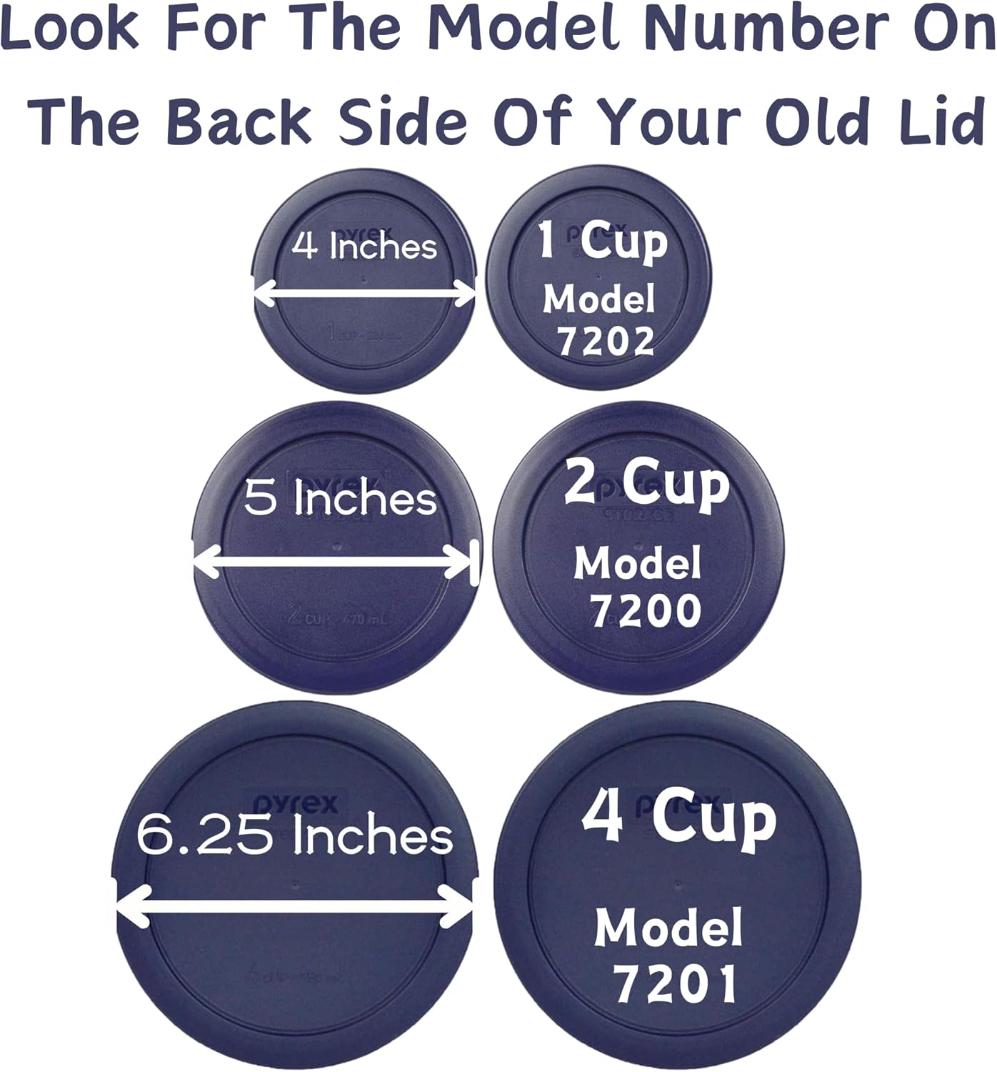 - Included: Pyrex (2) 7202-PC 1-Cup, (2) 7200-PC 2-Cup, & (2) 7201-PC 4-Cup Blue Food Storage Replacement Lids - Made in USA