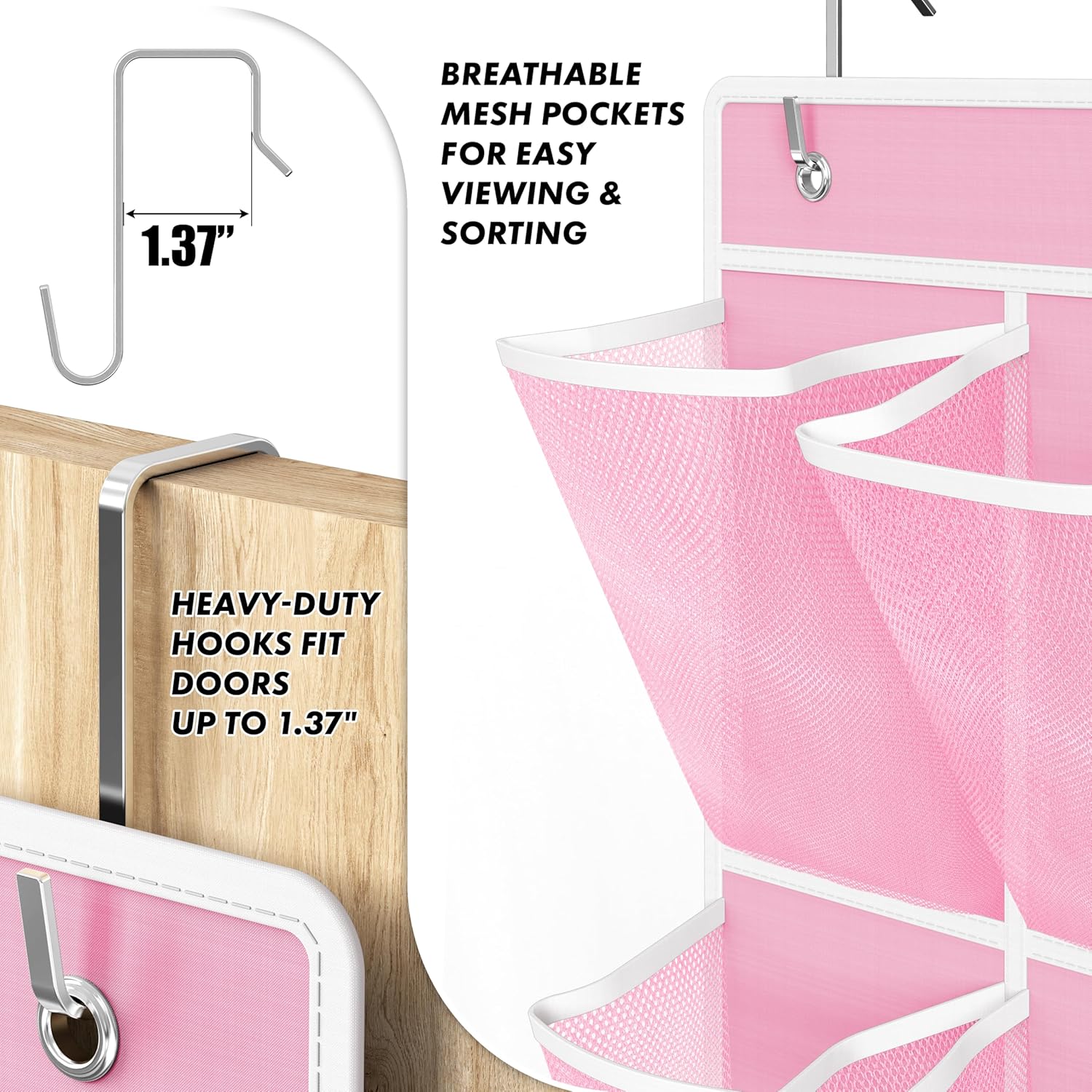 - 2-Pack, 12 Large Pockets: Includes 2 over-the-door organizers, each with 12 large 6" x 8" mesh pockets; ideal for shoes, accessories, cleaning supplies, and more
