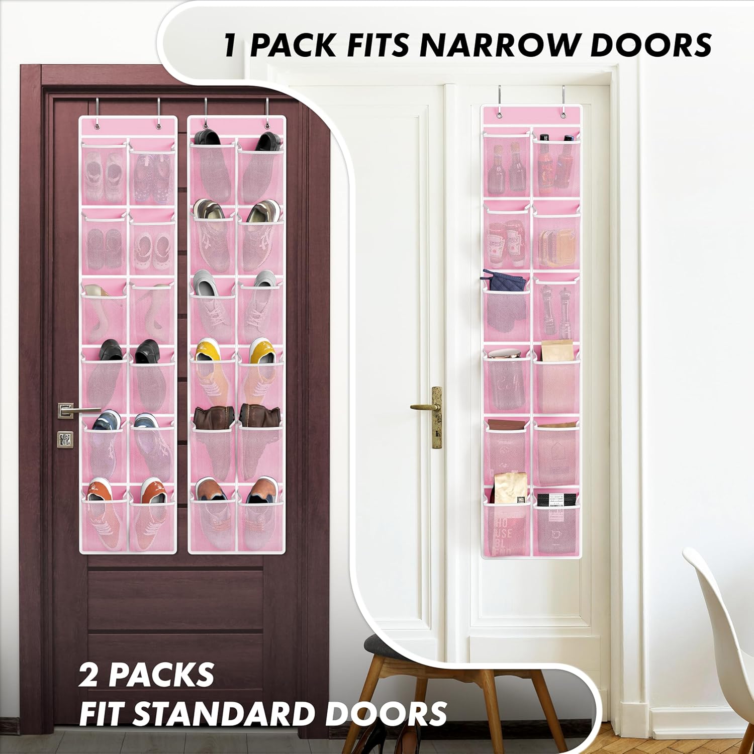 Simple Houseware 24 Pockets - 2PK 12 Large Pockets Over Door Hanging Shoe Organizer, Pink