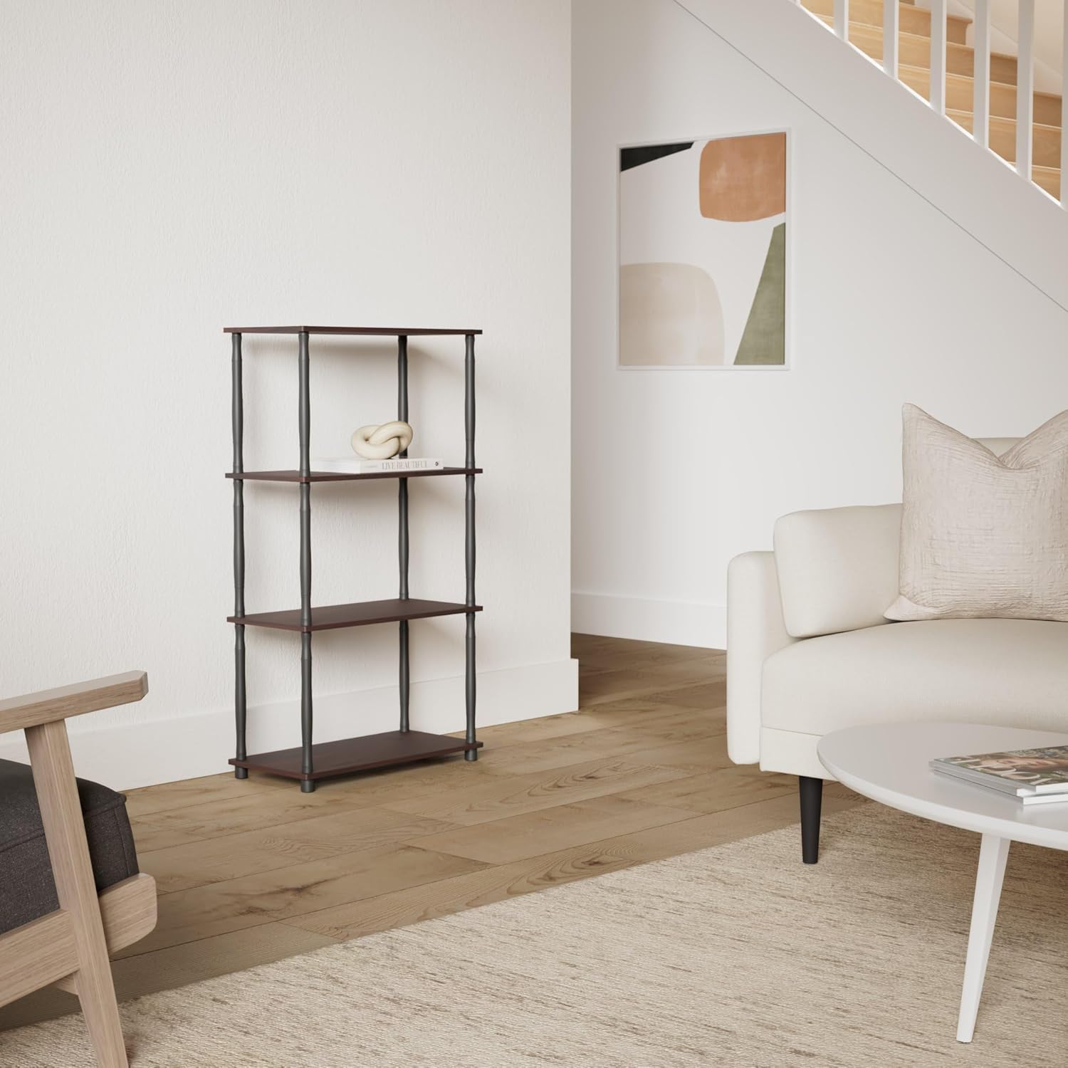 Furinno Turn-N-Tube 4-Tier Multipurpose Shelf Display Rack, Classic Tubes, Dark Cherry/Black