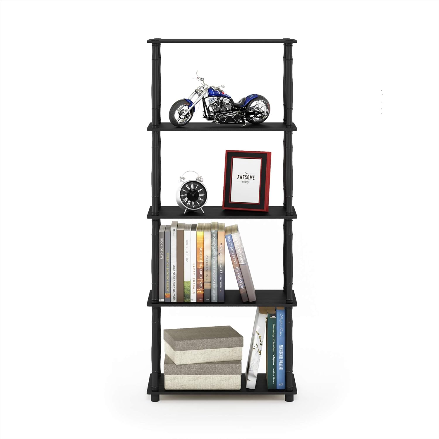 Furinno Turn-N-Tube 5-Tier Multipurpose Shelf / Display Rack / Storage Shelf / Bookshelf, Classic Tubes, Americano/Black