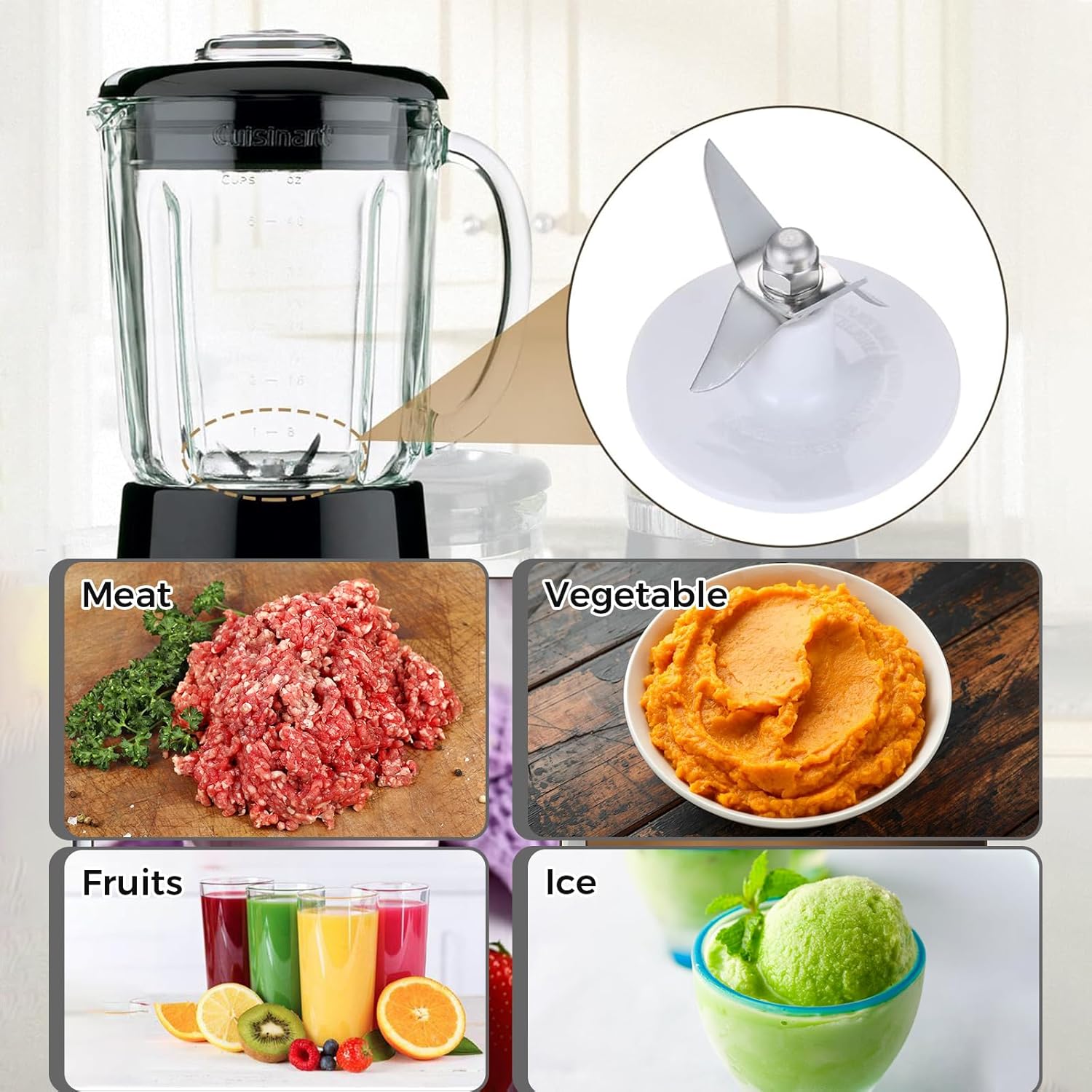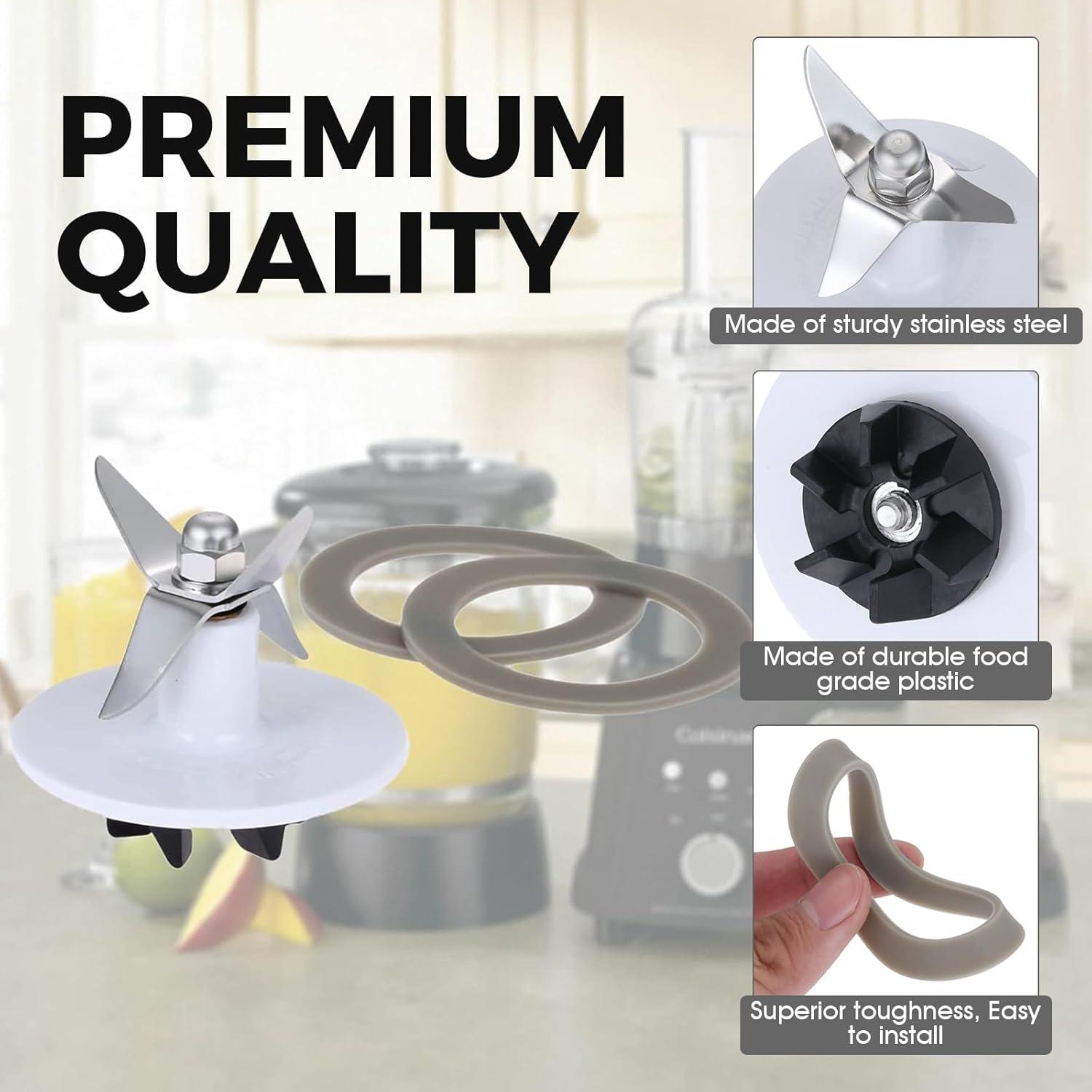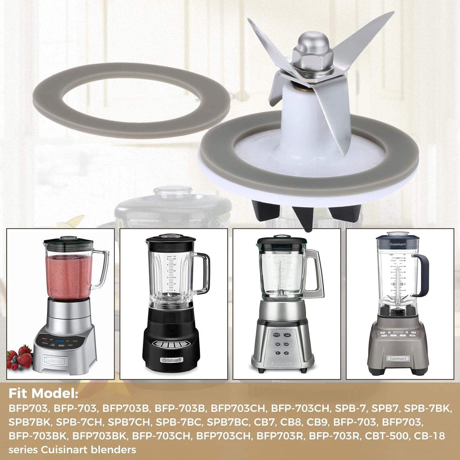 Blender Blade Cutting with 2 Gasket Sealing, Replacement for Cuisinart CBT-500, SB5600, CB600, BFP703, BFP-703, BFP703B, BFP-703CH, SPB7, SPB-7BK, CB8, CB9, BFP-703