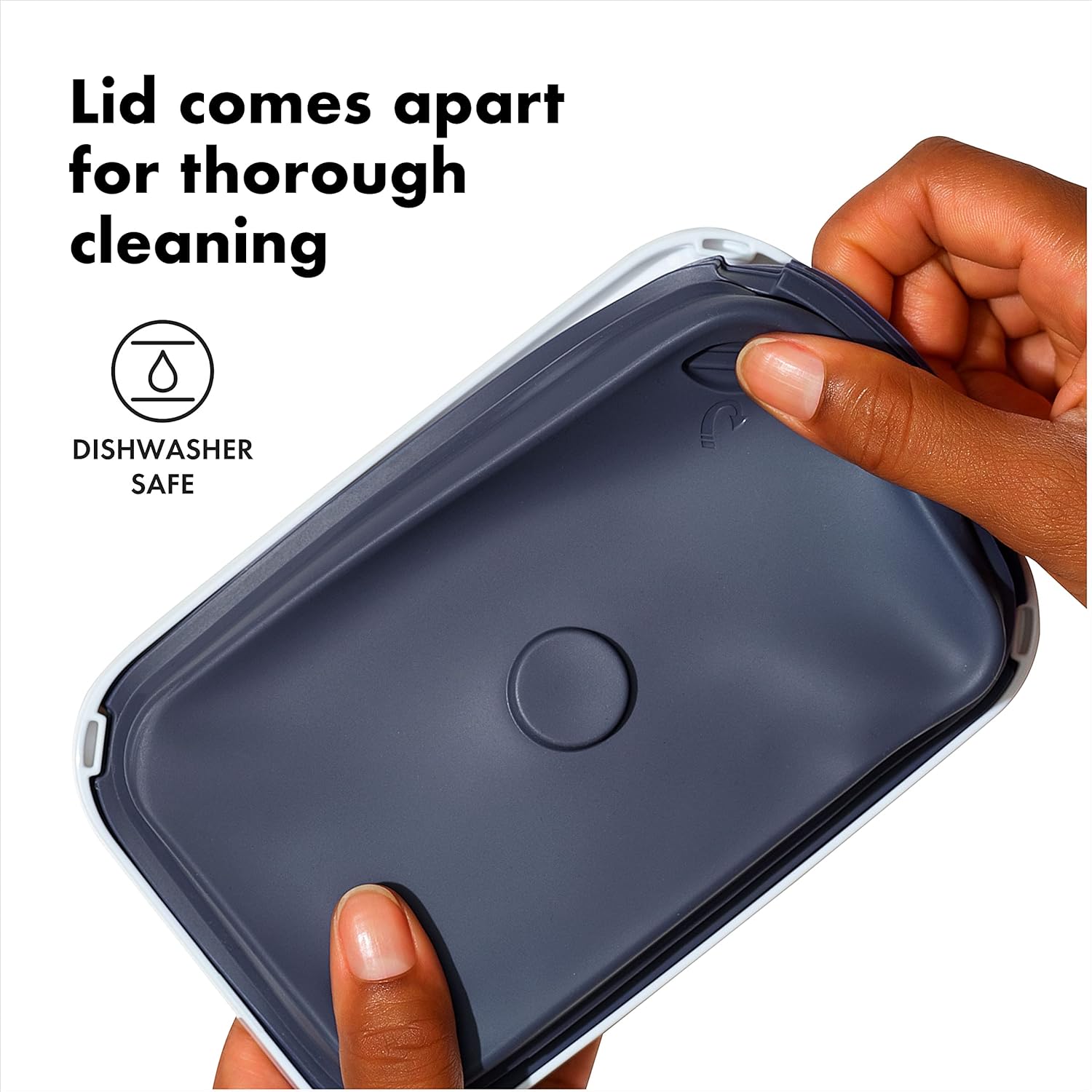 - Push the button to engage the airtight seal. The button doubles as a handle for the lid