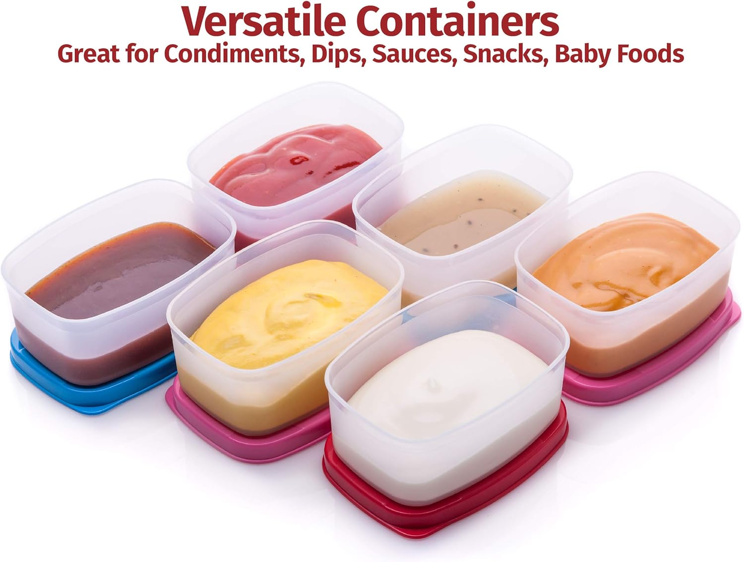 • VARIOUS SIZES AVAILABLE – each set contains 6 plastic food containers with lids in 3 colors (2 lids in each color). Please select the size you require when making your purchase. Sizes available are: Nano Round 1.3 oz., Mini Mate 2.3 oz., Cute Containers 3 oz., Mini Fresh 4 oz., Handy Square 5 oz., Tiny Wonder 6.5 oz., Executive Round Med. 10 oz