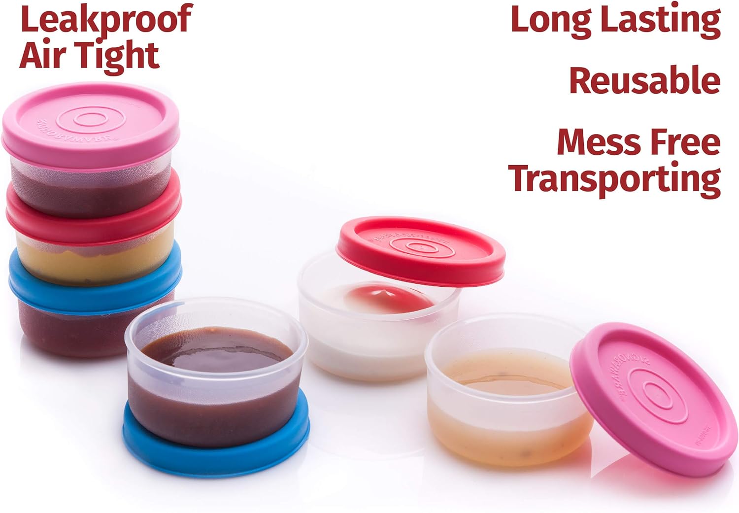 - MULTI-PURPOSE FOOD STORAGE TUBS – transparent plastic food containers are an excellent way to store food as you can see straightaway what each tub contains. Use for condiments, snacks on the go, food preparation, fruit portions for lunch boxes, baby food portions or even to store dog food or treats when on the road and your pup needs to be fed