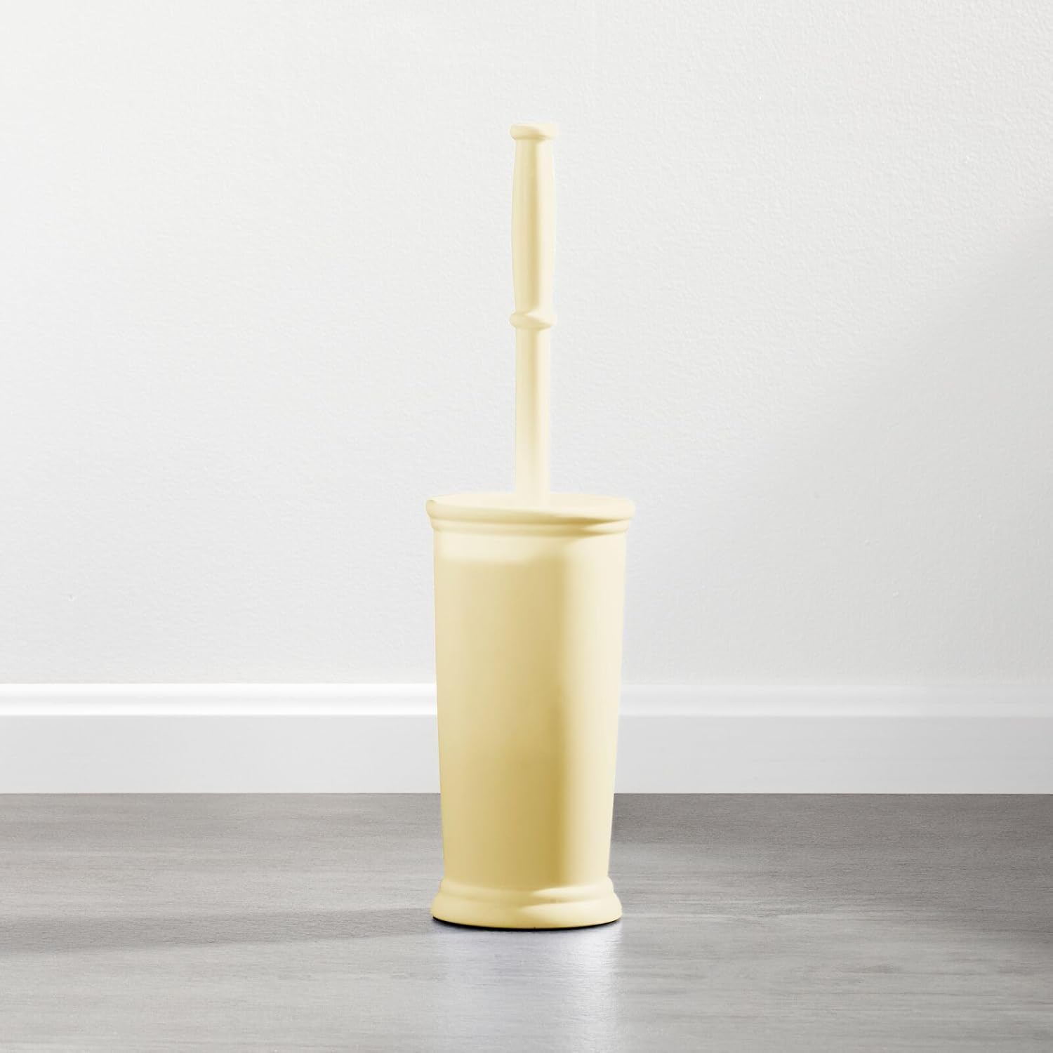 mDesign Toilet Bowl Brush and Holder - Covered Bathroom Brush - Standing Scrubber in Modern Holder - Space Saving, Deep Cleaning for Toilet - Hyde Collection - Light Yellow