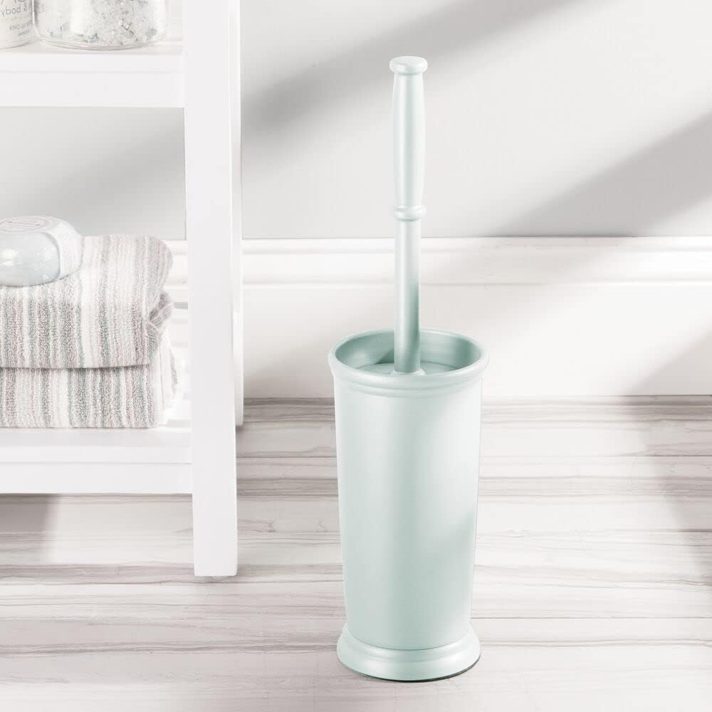 mDesign Toilet Bowl Brush and Holder - Covered Bathroom Toilet Brush - Standing Toilet Bowl Scrubber in Modern Holder - Space Saving, Deep Cleaning Brush for Toilet - Hyde Collection - Mint Green