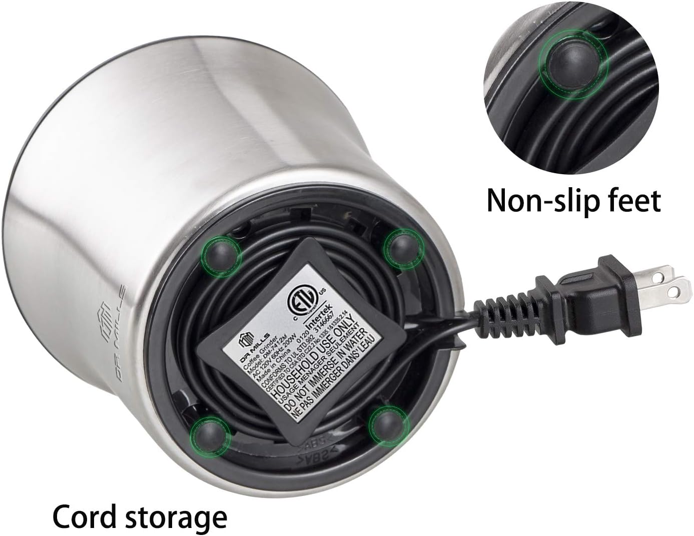 DR MILLS DM-7412M Stainless Steel Electric Dried Spice and Coffee Grinder,2 in 1 Wet and Dry, Removable Cups, Dishwasher Safe
