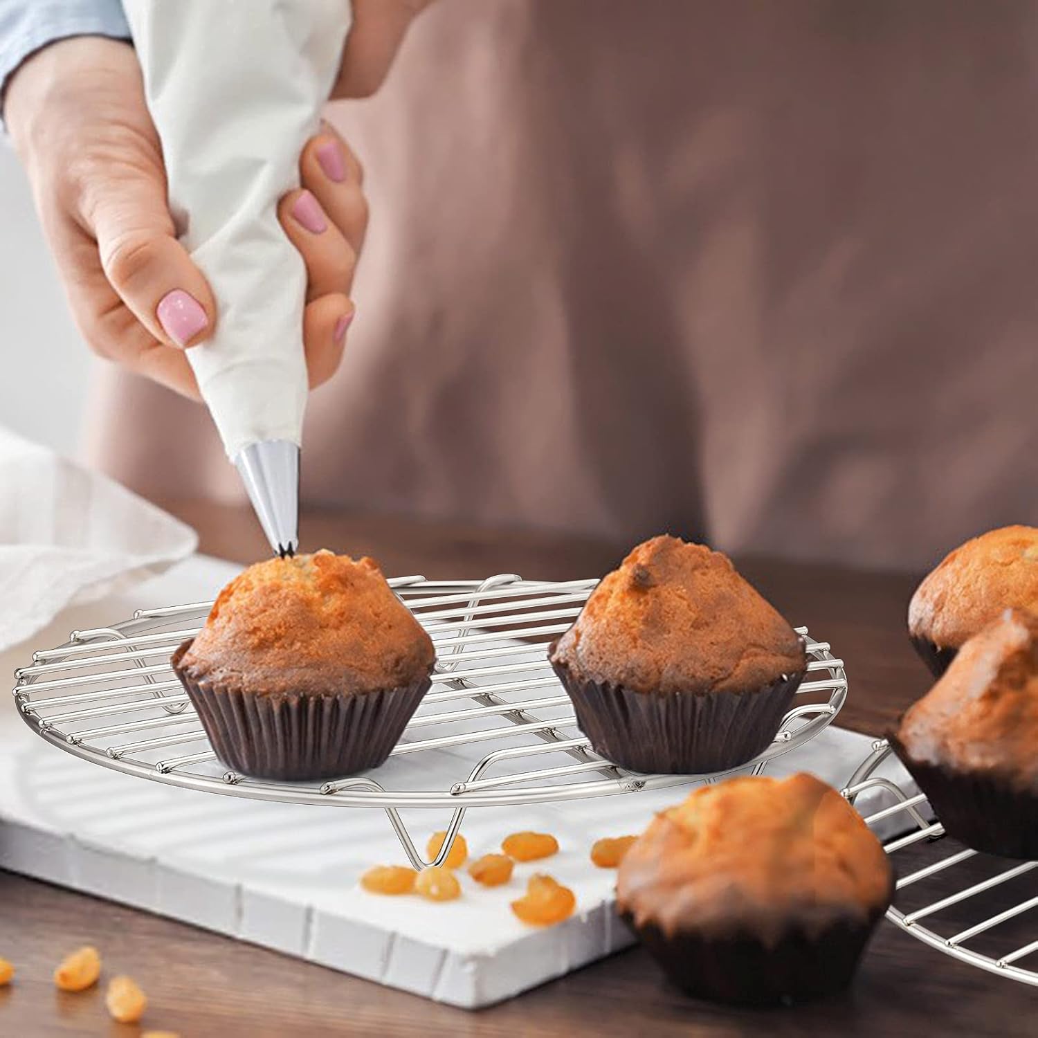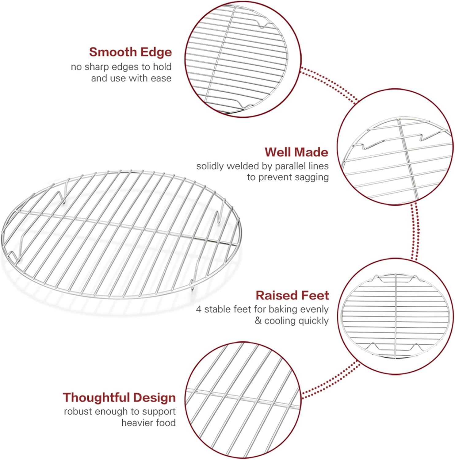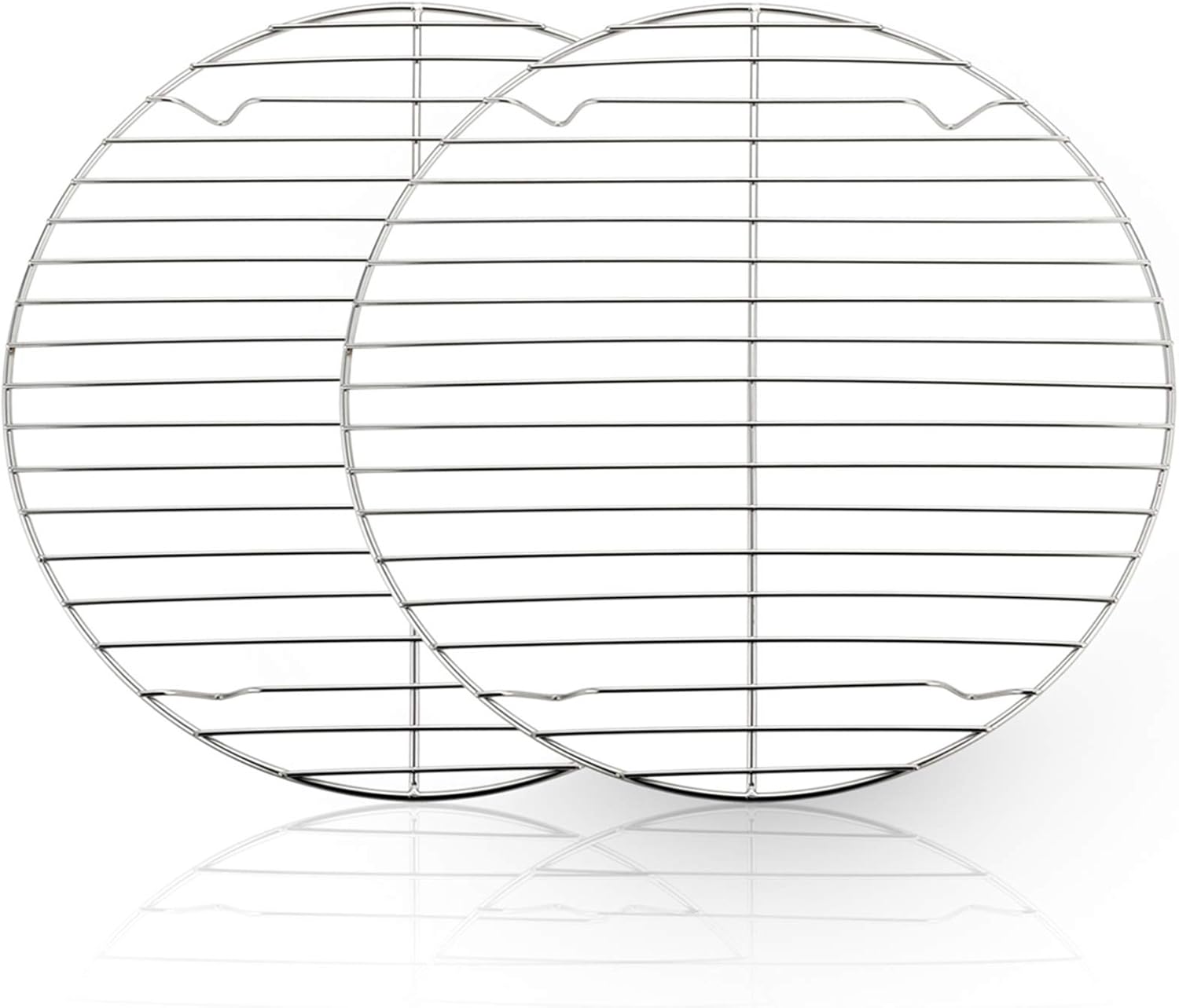 - MULTI-USE(2 PCS): 2 large round baking racks - 10½” × 10½”, Perfect for steaming or baking or cooling the bread, cookie, cupcake, pizza or anything you need, Thoughtful gift for families or friends