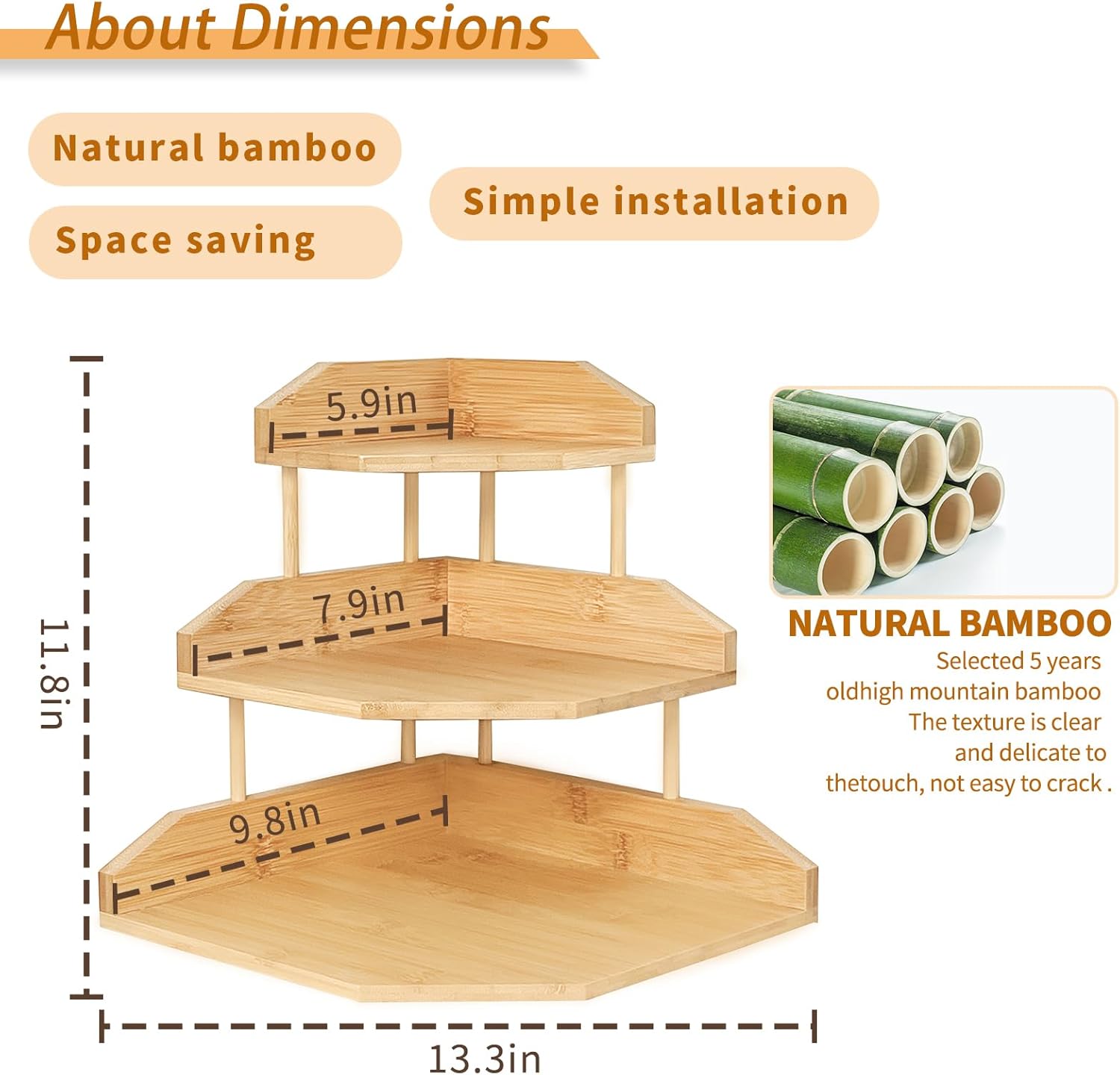 HYNAWIN Bamboo Spice Rack Corner Shelves-3 Tier Standing Pantry Shelf for Kitchen Counter Storage,Bathroom Countertop Storage Organizer-Irregular Pattern Desk Bookshelf