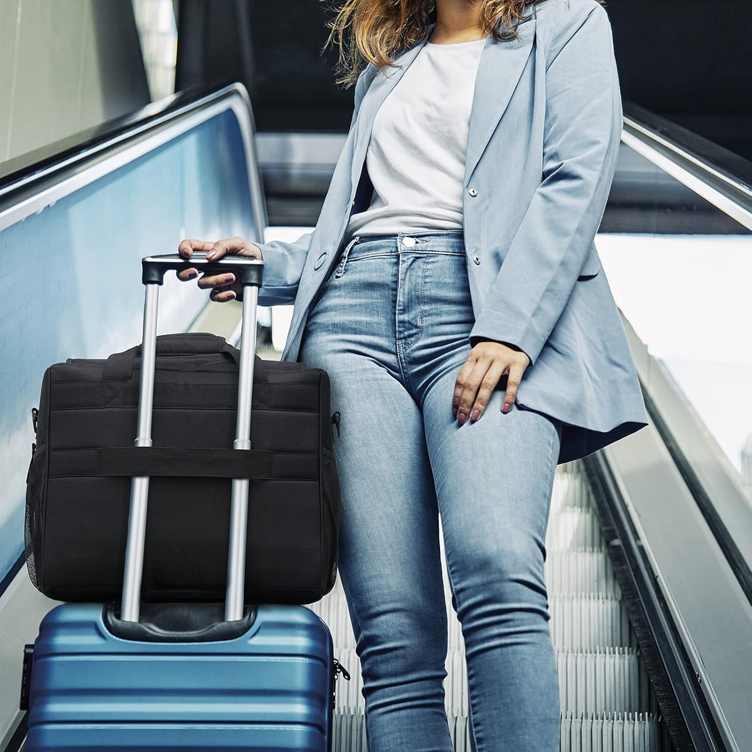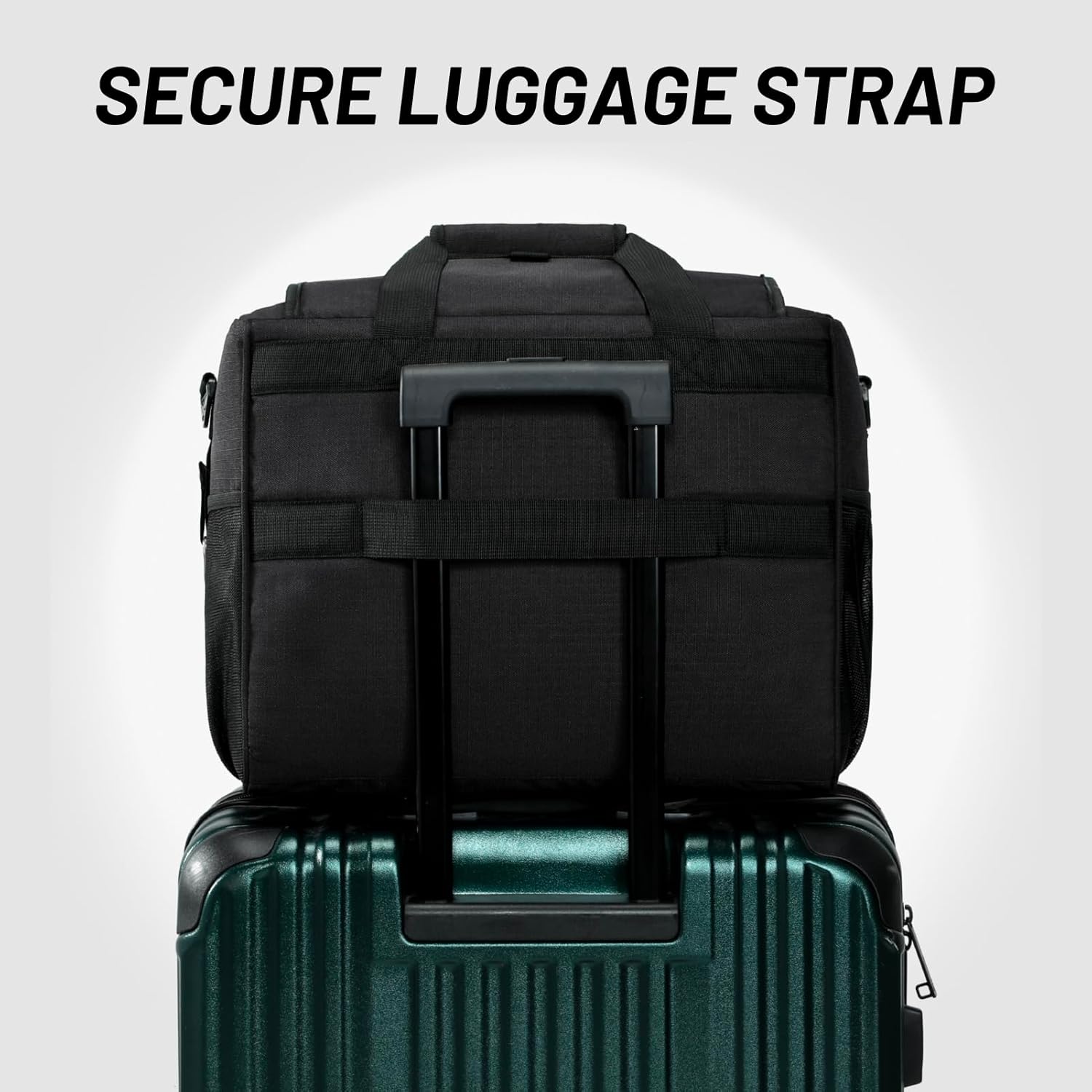 - Multifunctional Design: Back trolley strap can be directly put on the luggage trolley; side bottle opener for drinks; expandable cup holder; front zipper pocket and dual mesh pockets for organized essentials.