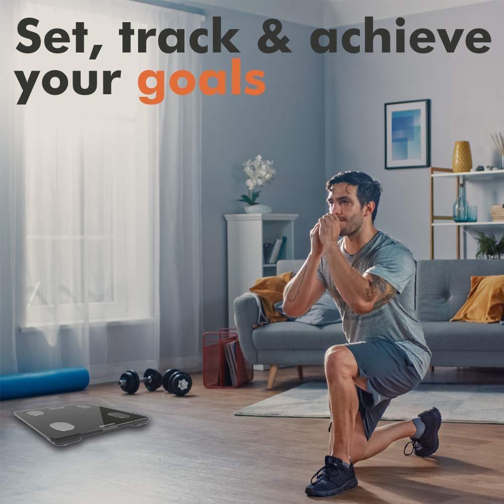 - HIGHLY ACCURATE AND FULLY AUTOMATIC - 4 high precision sensors and 4 sensitive electrodes work hard together to ensure this smart scale accurate and consistent body composition analysis. Just step on the weight scales bathroom to get timely readings - no more tapping to activate scales digital weight! Auto-connection, auto-recognition, auto ON/OFF, auto-zero, auto-calibration, low battery and overload indication. Just a simple, clear step towards a healthier lifestyle