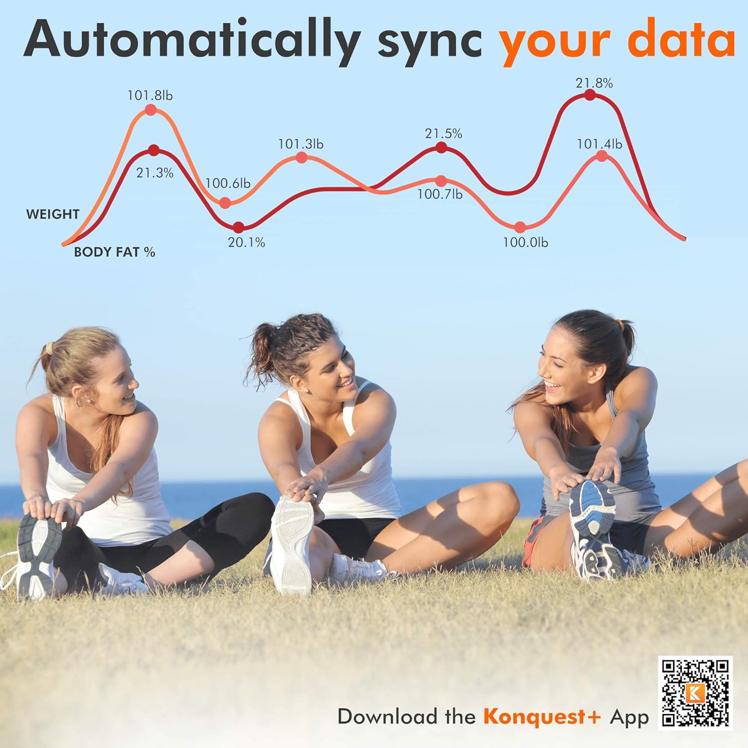 KONQUEST Smart Scale for Body Weight, Digital Bathroom Scale BMI Weighing Bluetooth Body Fat Scale, Body Composition Monitor Health Analyzer with Smartphone App, 400 lbs - Black