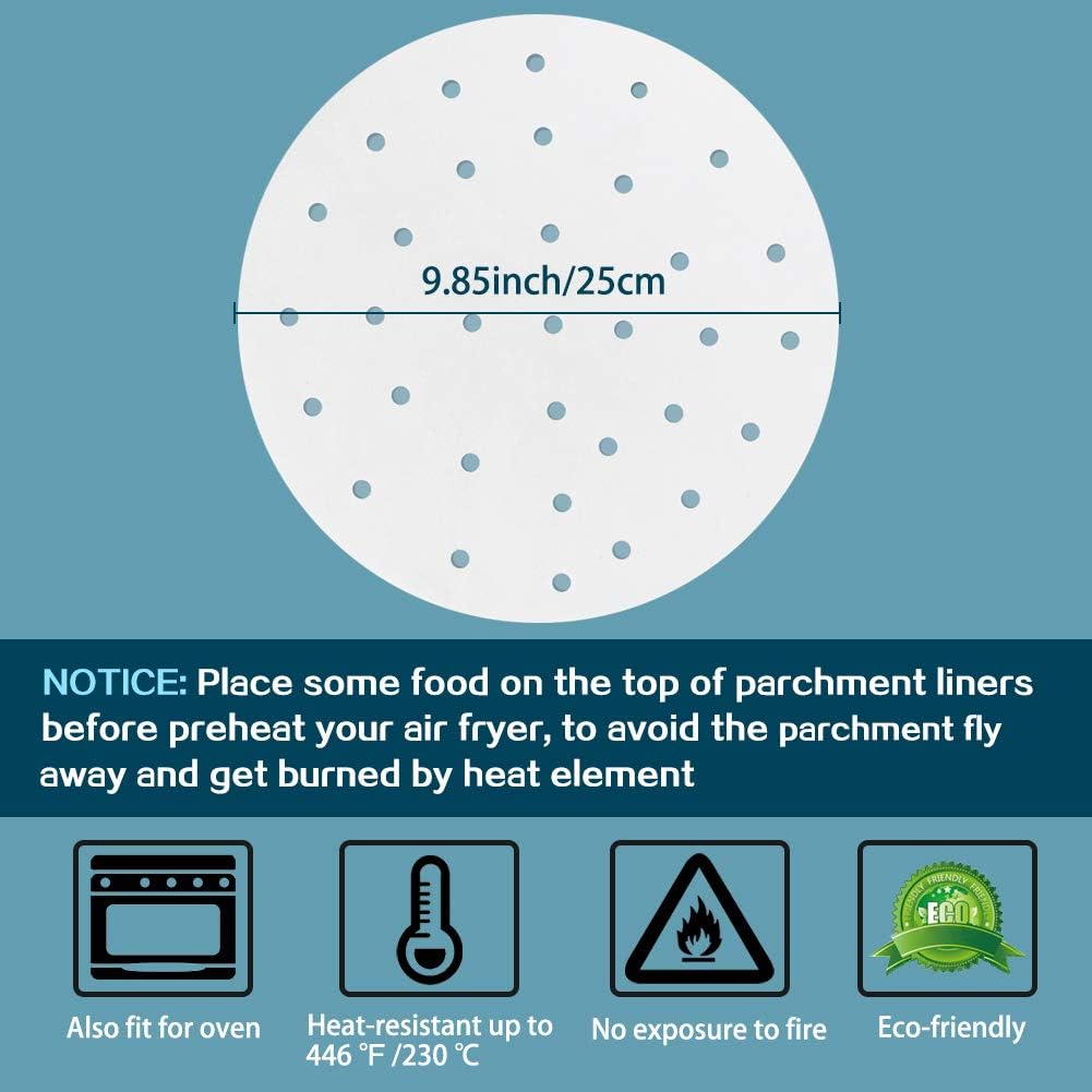 10 Inch Air Fryer Liners, Set of 200, Bamboo Steamer Liners/Dumpling Steamer Paper/Perforated Air Fryer Parchment Paper Sheet for Airfryer, Steaming Basket and More