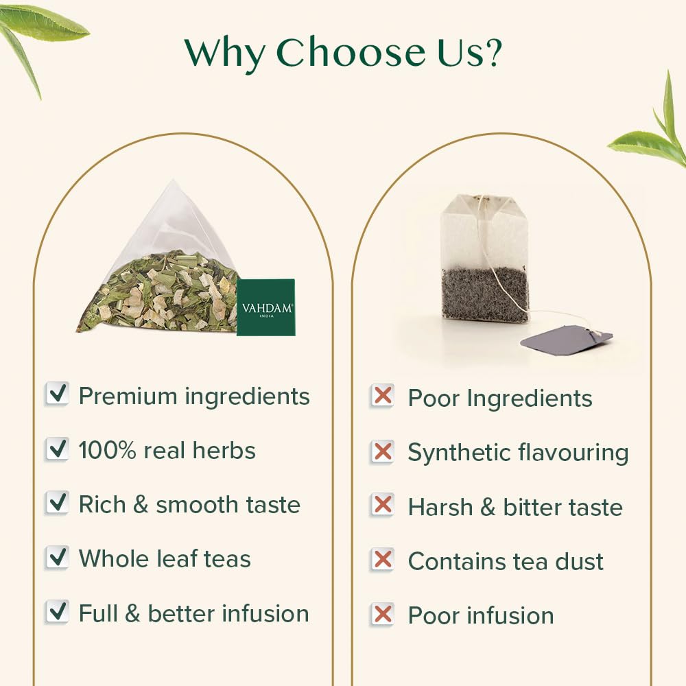 VAHDAM, Ginger Mint Green Tea Bags (100 Count) High Grown Green Tea with Raw Ginger | Medium Caffeine | Non GMO, Gluten Free | Mint Tea Bags | Resealable Ziplock Pouch