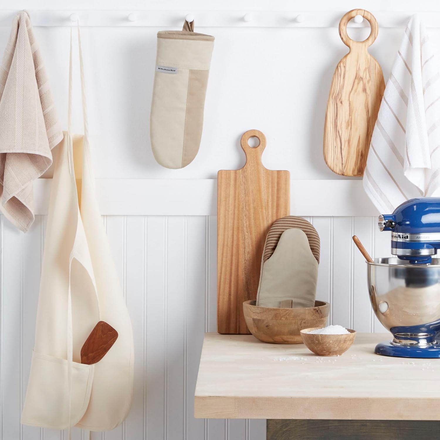 KitchenAid Beacon Two-Tone Non-Slip Oven Mitt Set, Milkshake/Beige, 5.75"x13", 2 Piece