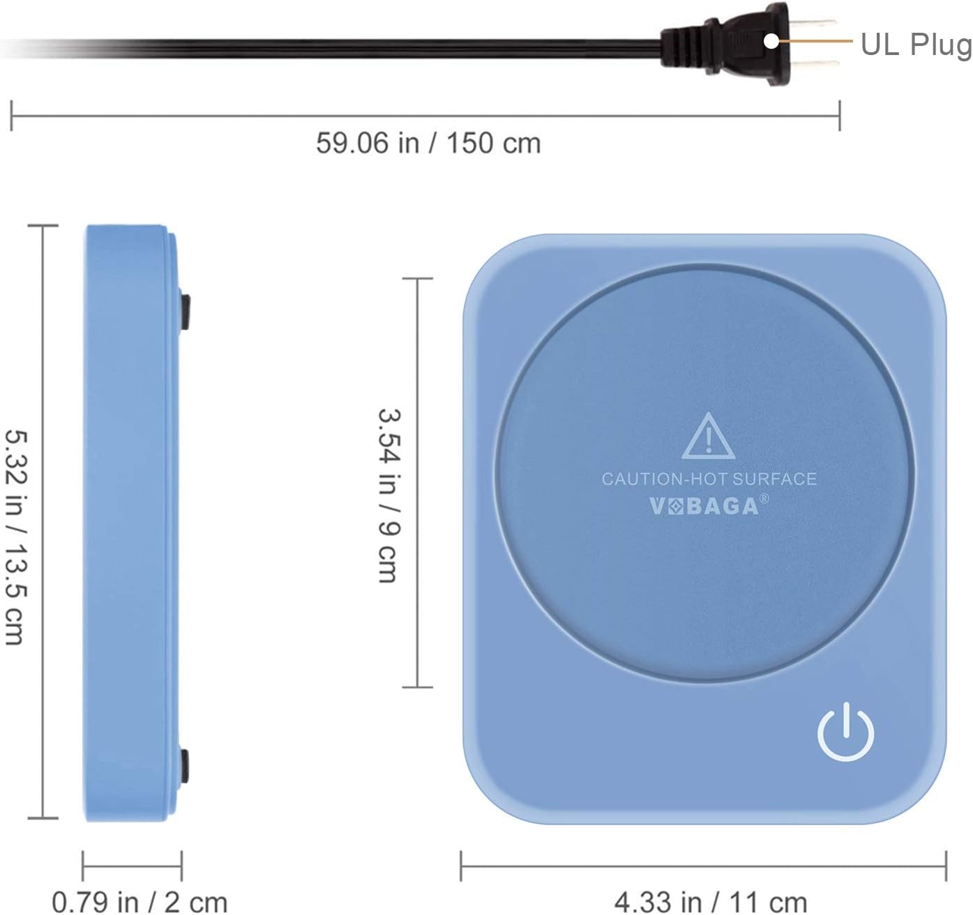 - Splash-proof & Large Heating Plate: The heating plate adopts sealed-insulation technology to prevent splashing water, which also fits most standard mugs well. The 59-inch plug cord will fits on your desk perfectly. Tips: Choose flat-bottom and thin-wall mug so that it can have a good connection to the warmer.