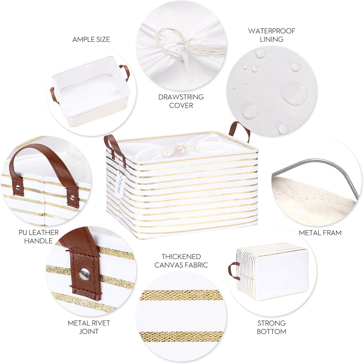 Hinwo 31L Large Storage Bins, Closet Organizers and Storage, Shelf Baskets, Foldable Clothes Storage Baskets with Handles, Containers for Clothing, Blanket, Towels, Toys, Bedding (Gold Stripe)