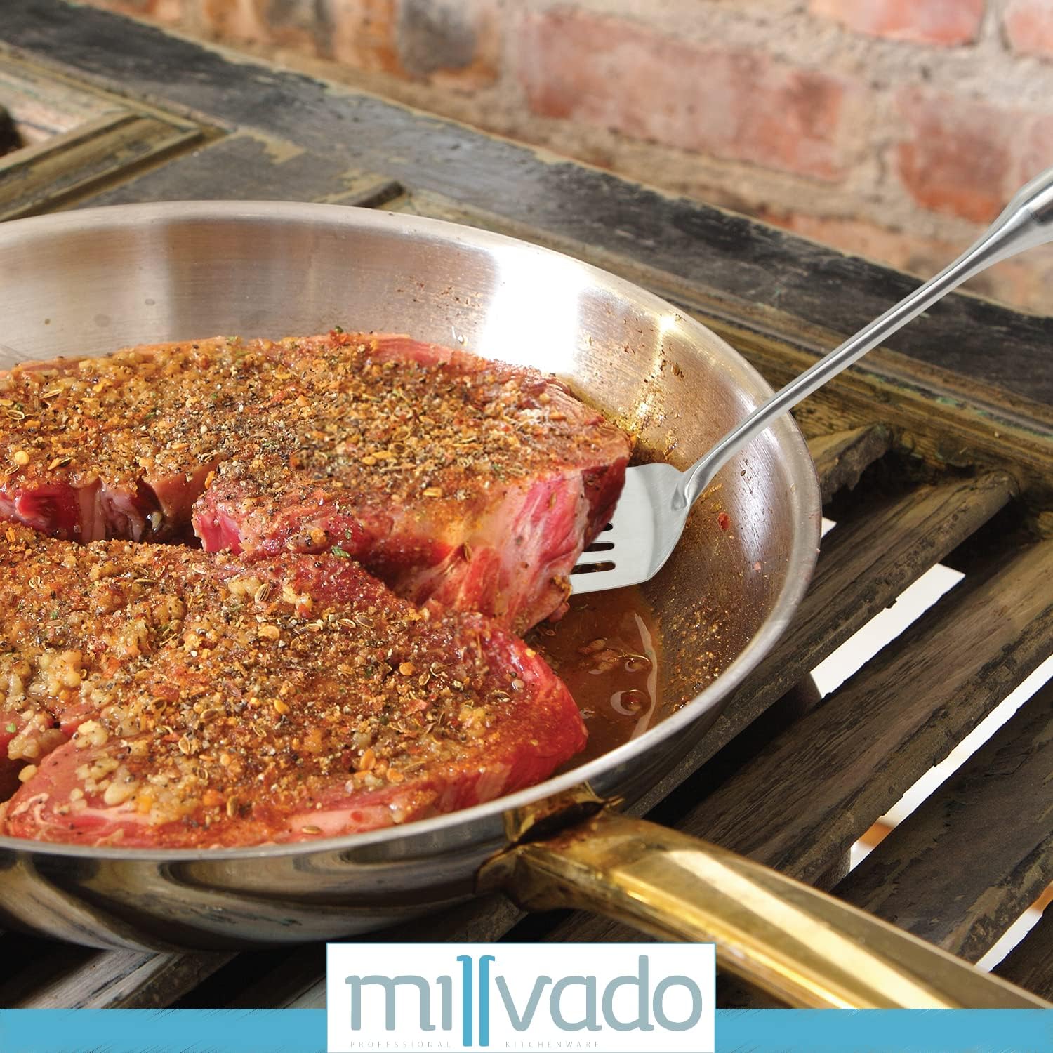 • SOLID STAINLESS STEEL: Stop your utensils from damaging your food and purchase the best metal spatula for cooking. While some utensils fray as they're used, this turner will maintain its glamorous look, even after much grilling, frying and flipping. Works well with a cast iron skillet or grill, too.