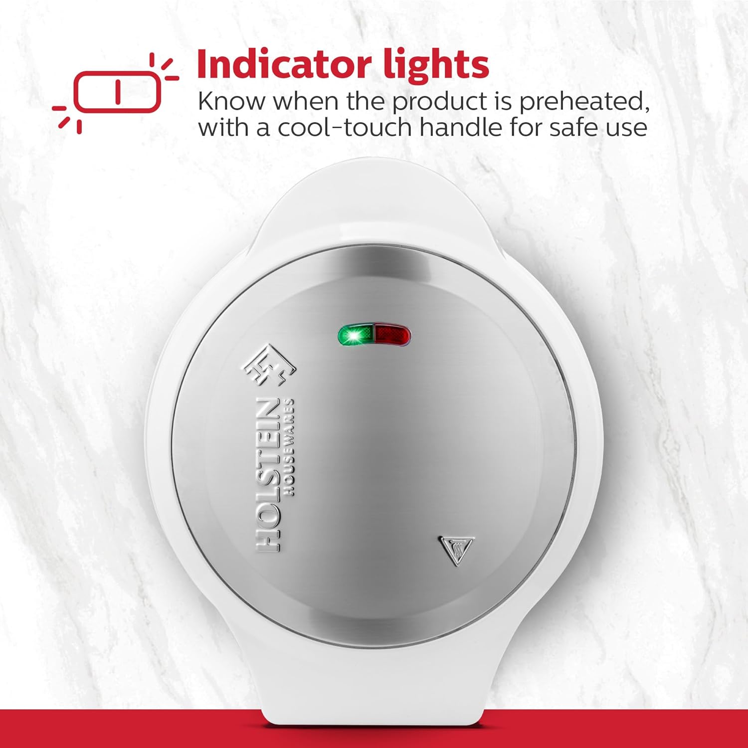 Holstein Housewares Stainless Steel 2 Section Omelet & Frittata Maker, Non Stick Coating, Easy To Clean, Indicator Lights, Compact Storage, Prepare Versatile Recipes in Minutes. 2 Portions, White