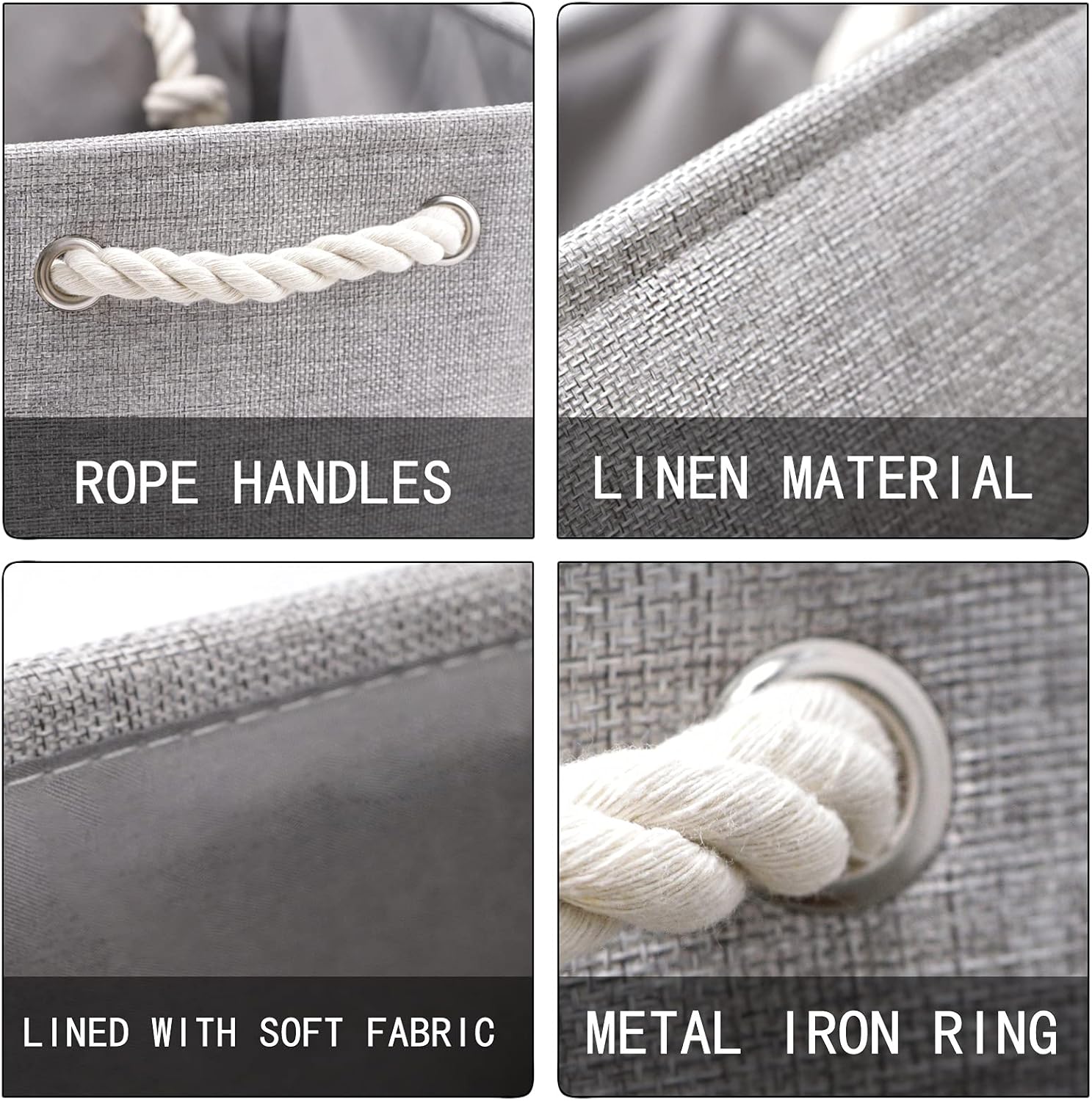 - 【Decorative Storage Baskets】 Our foldable basket, Sophisticated and practical. Used as closet organization bins, child/kid room toy storage boxes, living room, laundry organizing, basement, cat & dog toy holder, nursery, clothes basket, garage storage, book and magazine organizer, makeup basket, bathroom towel, and toilet storage, shelf fabric drawers and many other uses
