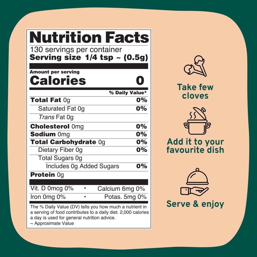 - PURE CLOVES FROM KARNATAKA - Our whole Cloves are NON-GMO and Gluten-free, without any added preservatives, artificial flavors or colors. Highest and purest quality cloves, ethically sourced from prime harvest gardens of Karnataka, India.